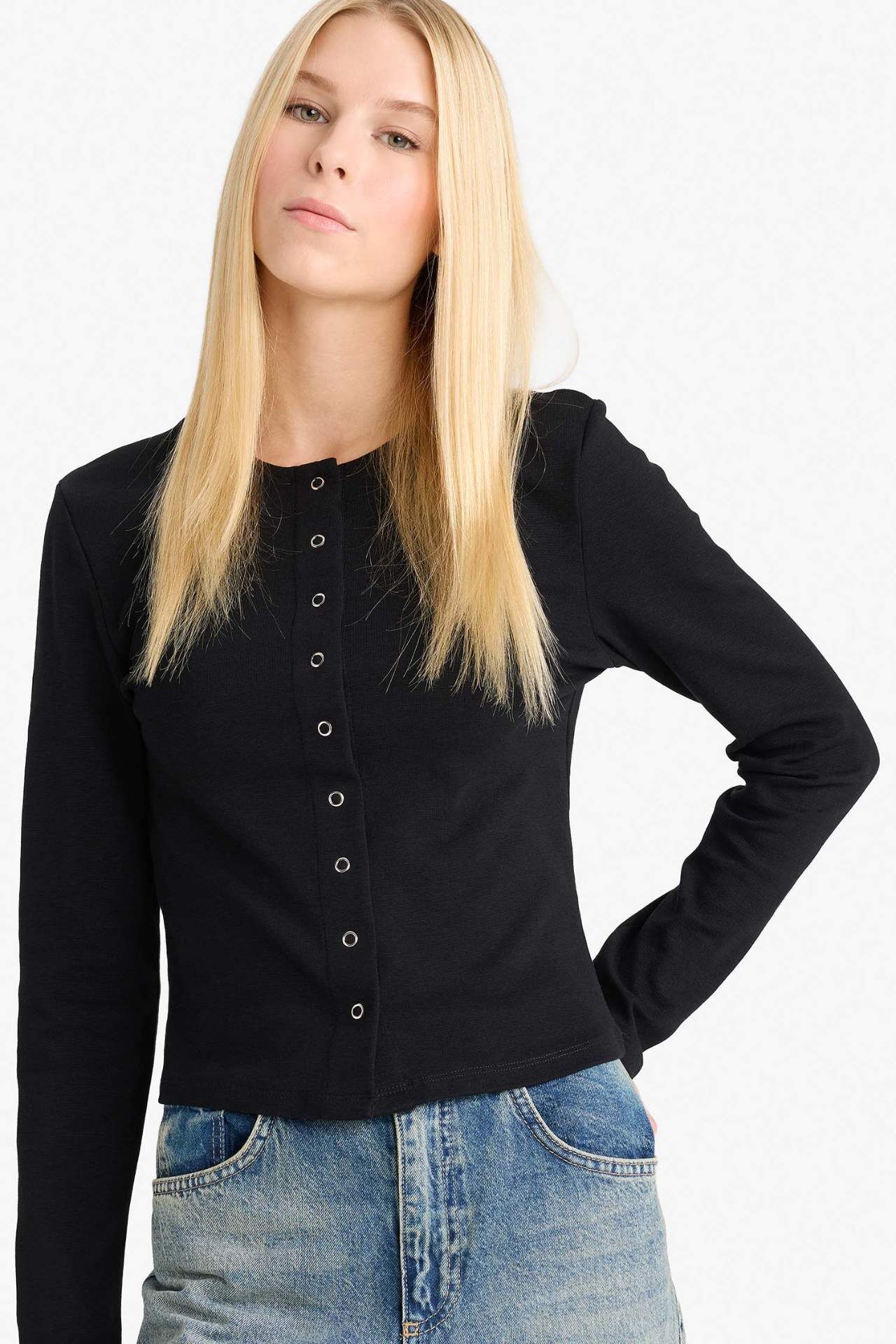 Fitted Bisiklet Yaka Ribana Hırka