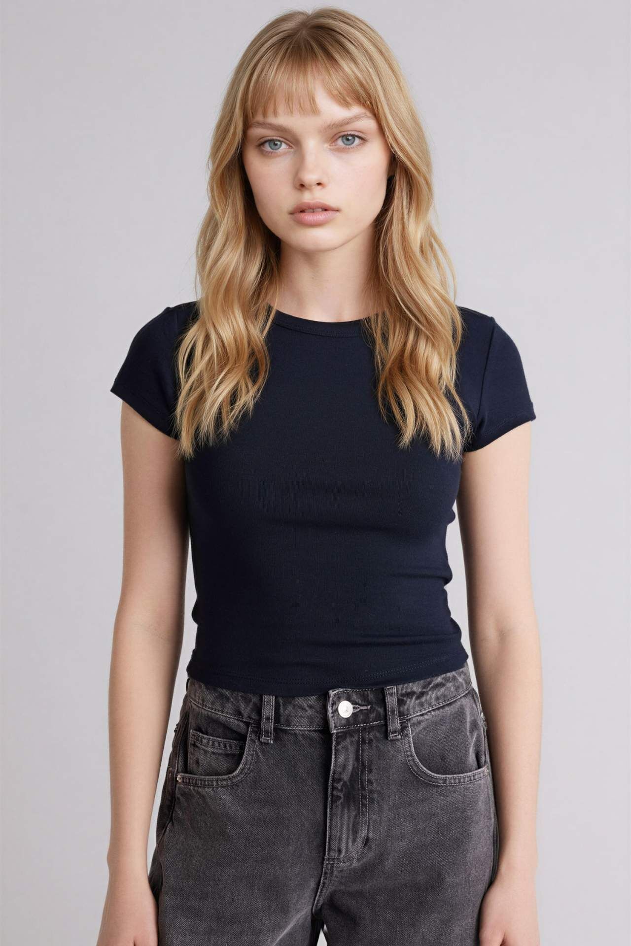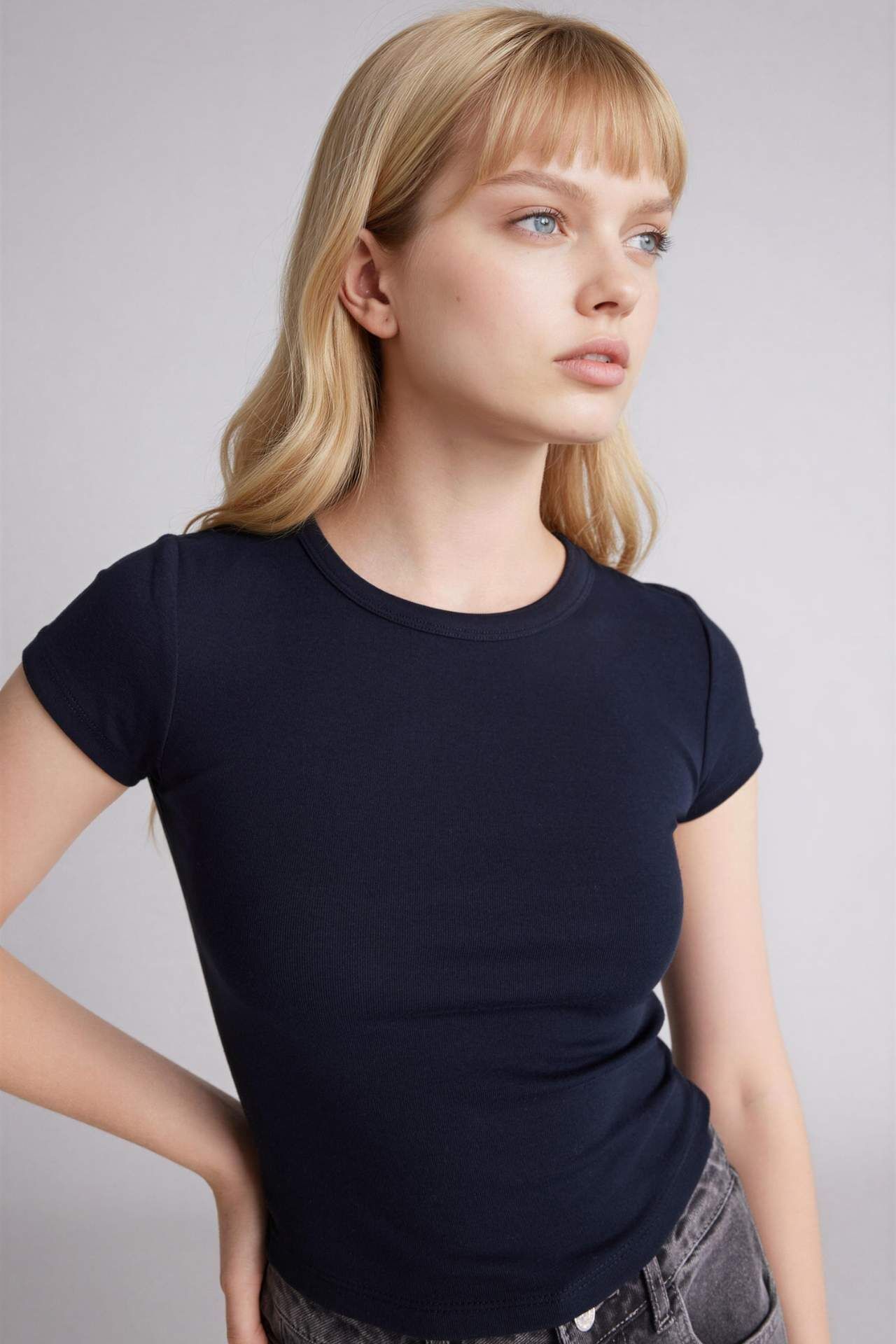 Fıtted Bisiklet Yaka Ribana Kısa Kollu Tişört