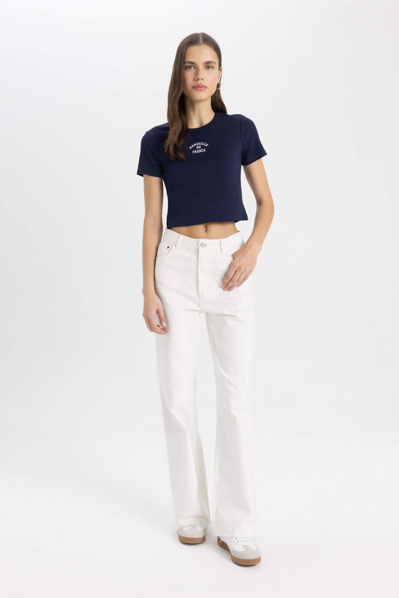 DeFacto Fitted Bisiklet Yaka Slogan Baskılı Kısa Kollu Tişört C7717AX24SMNV31