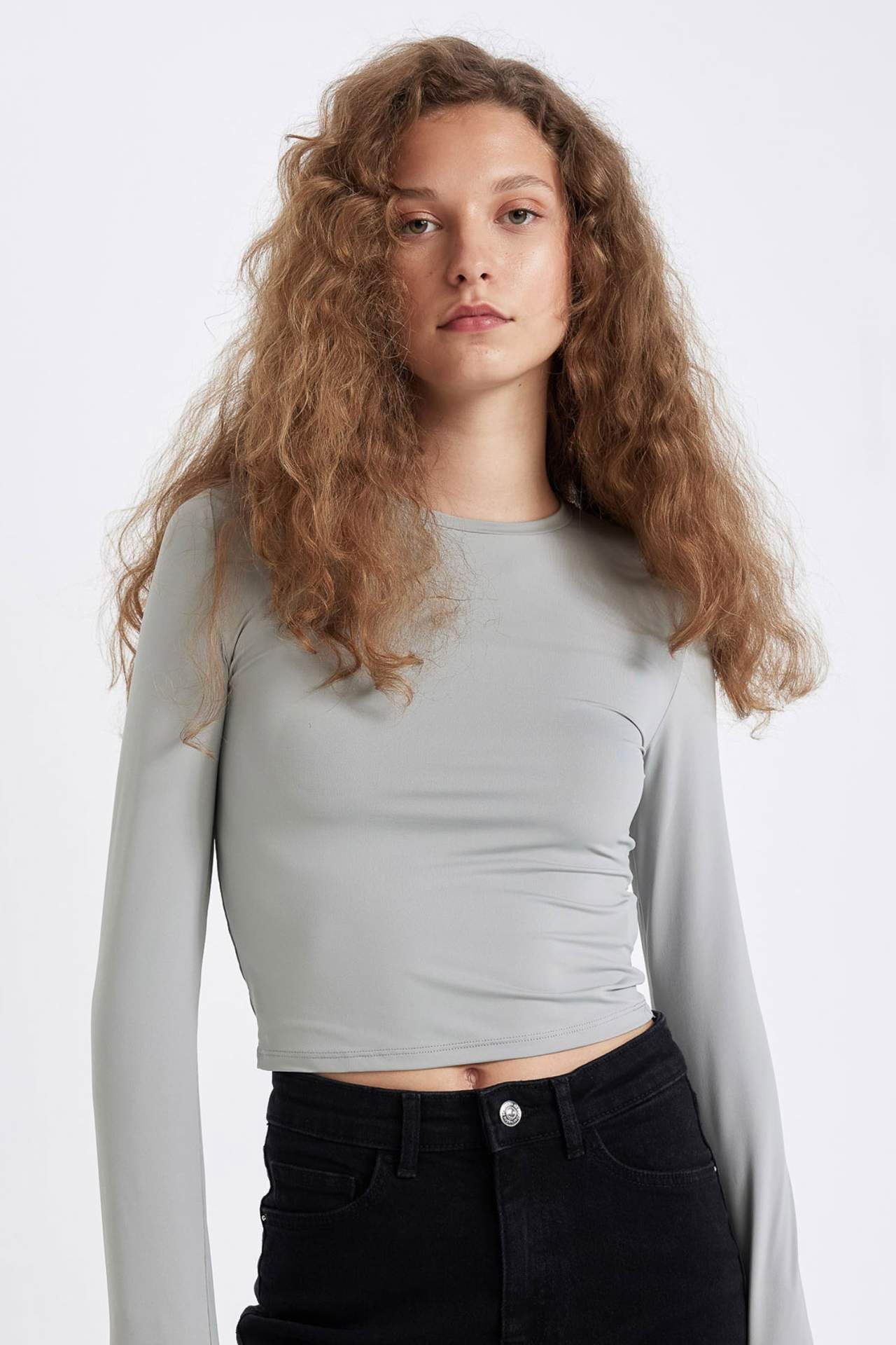 DeFactoFit Fitted Bisiklet Yaka Uzun Kollu Tişört D0199AX24AUGR254