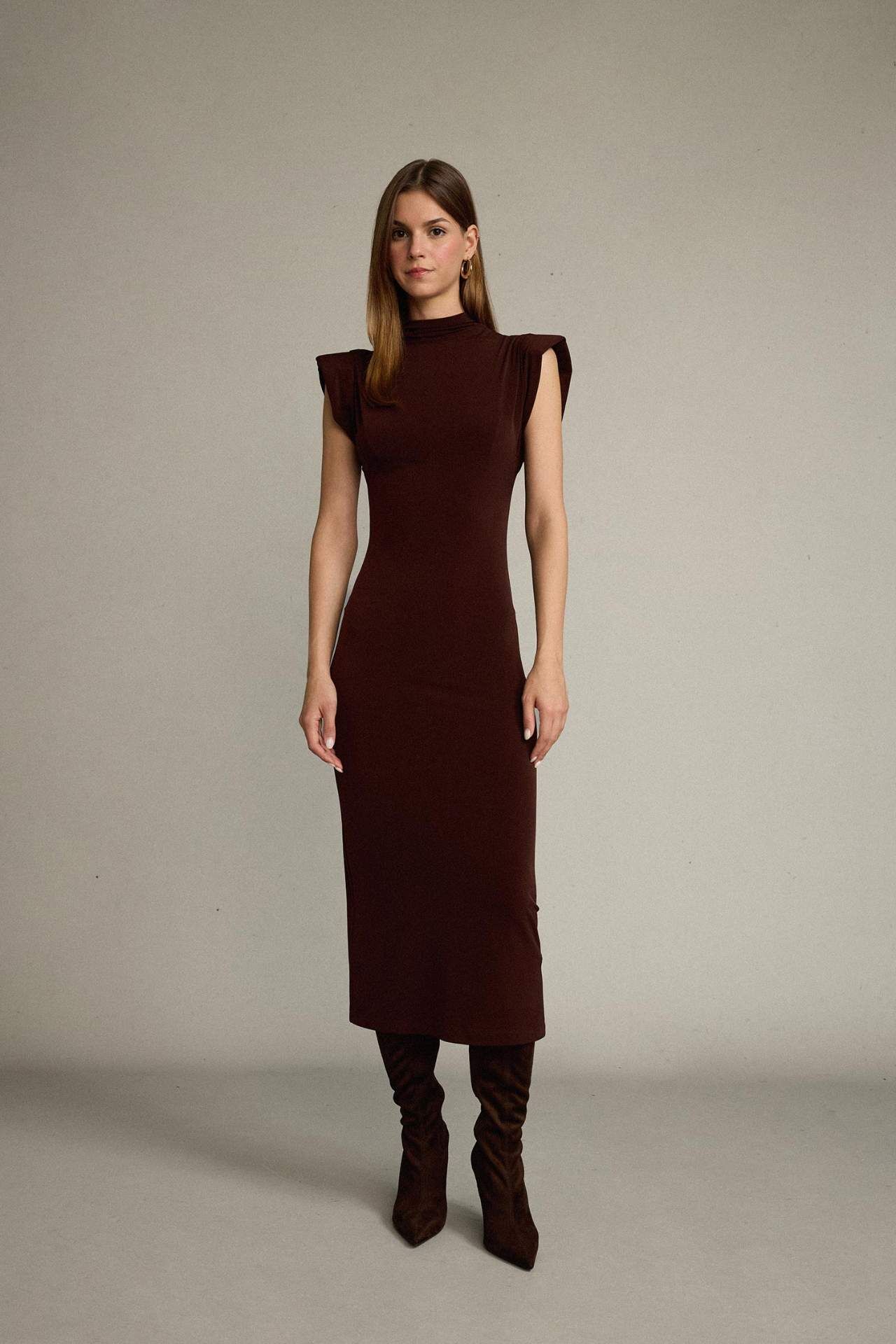 Fitted Dik Yaka Kolsuz Midi Elbise