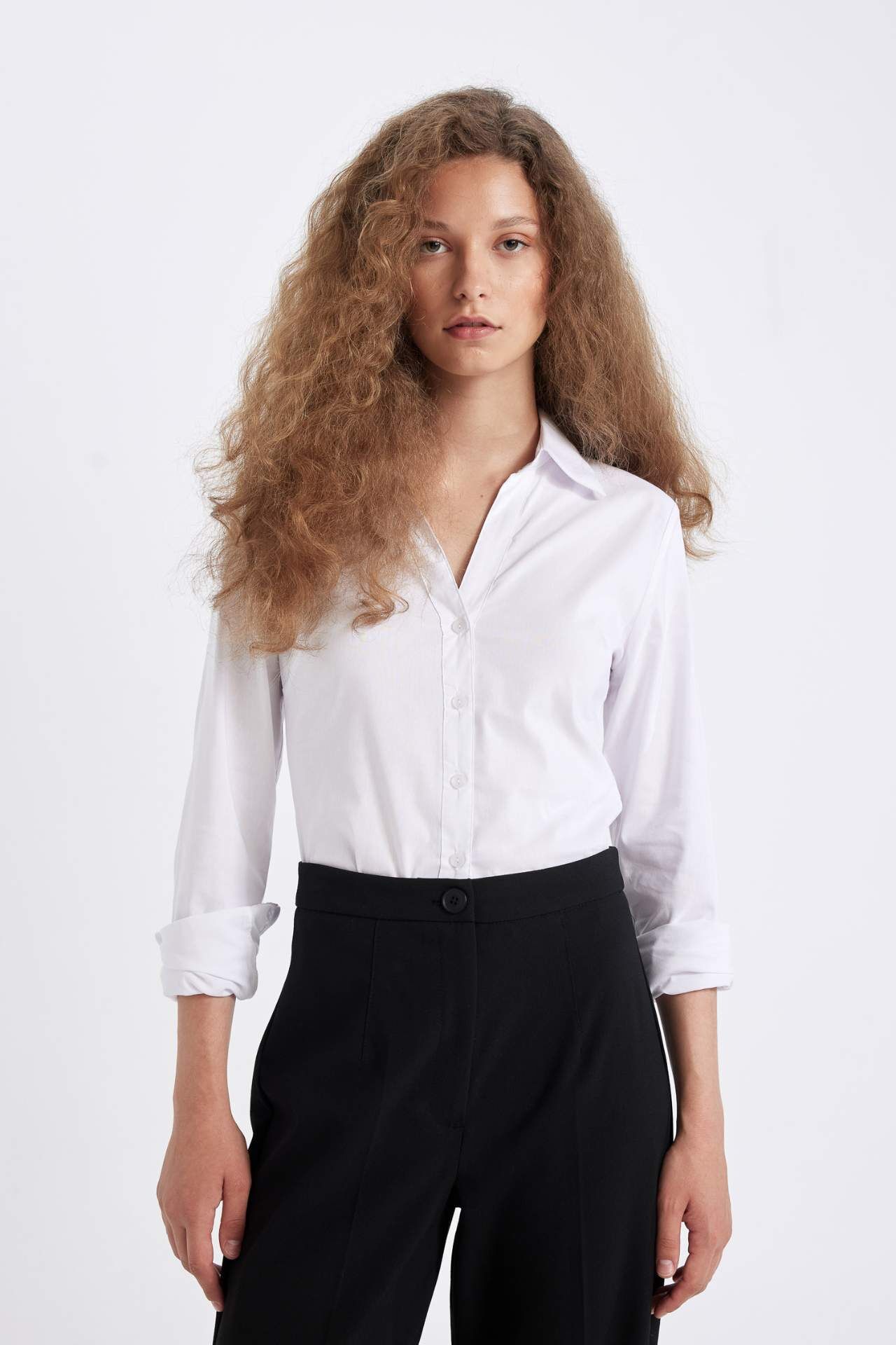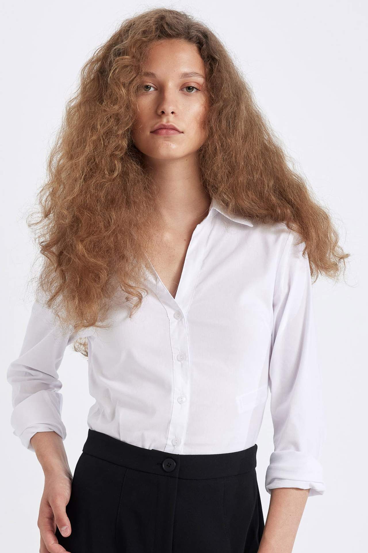 DeFacto Fitted Gömlek Yaka Bengalin Uzun Kollu Gömlek Y3128AZ24AUWT36