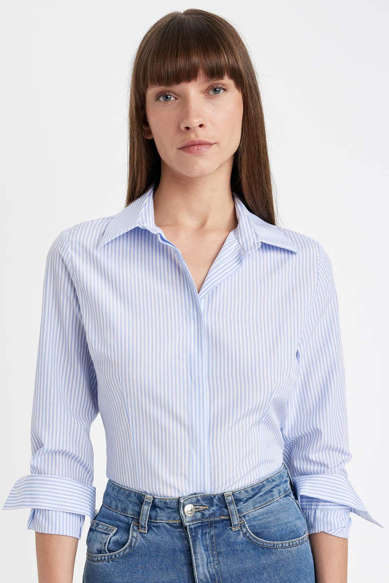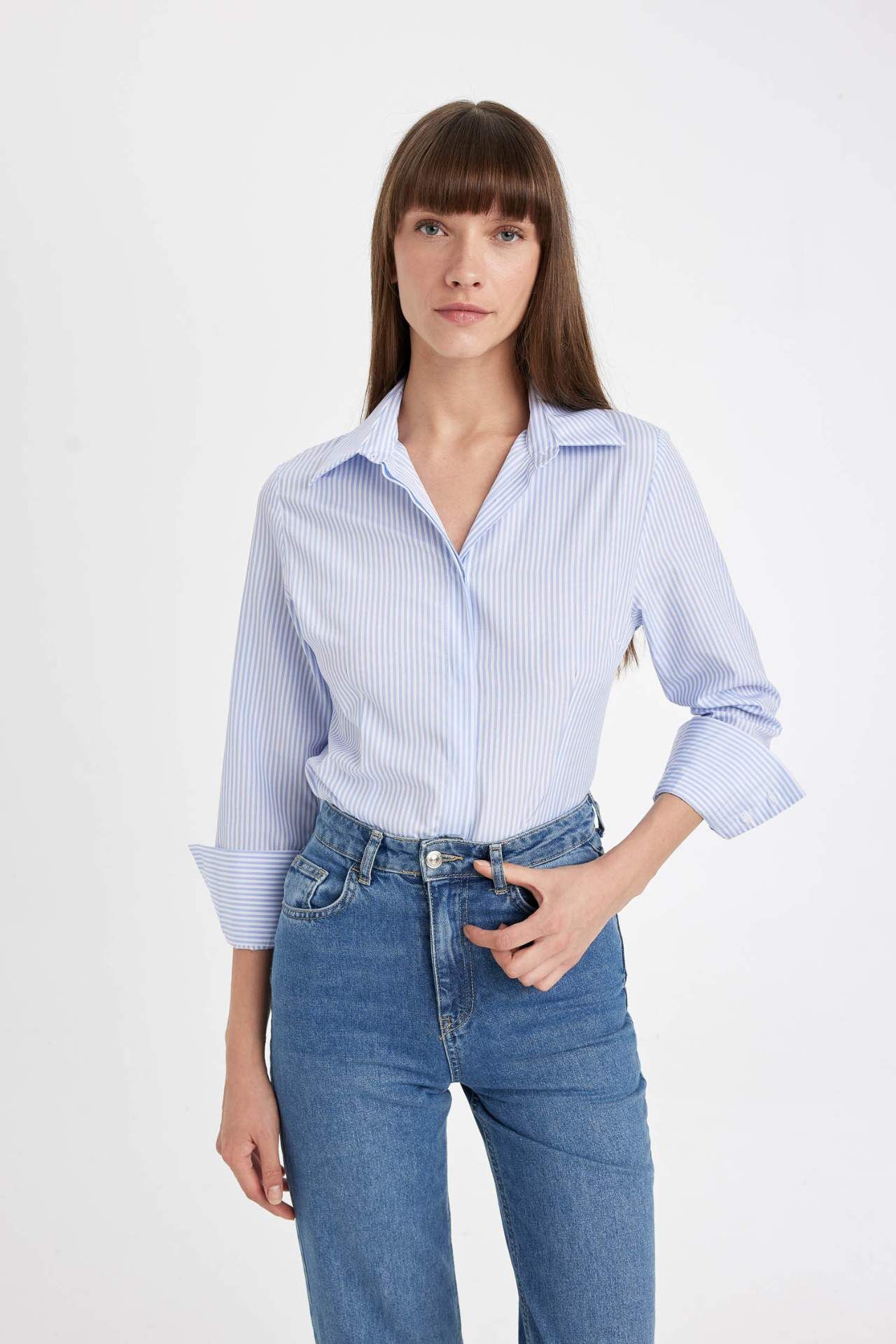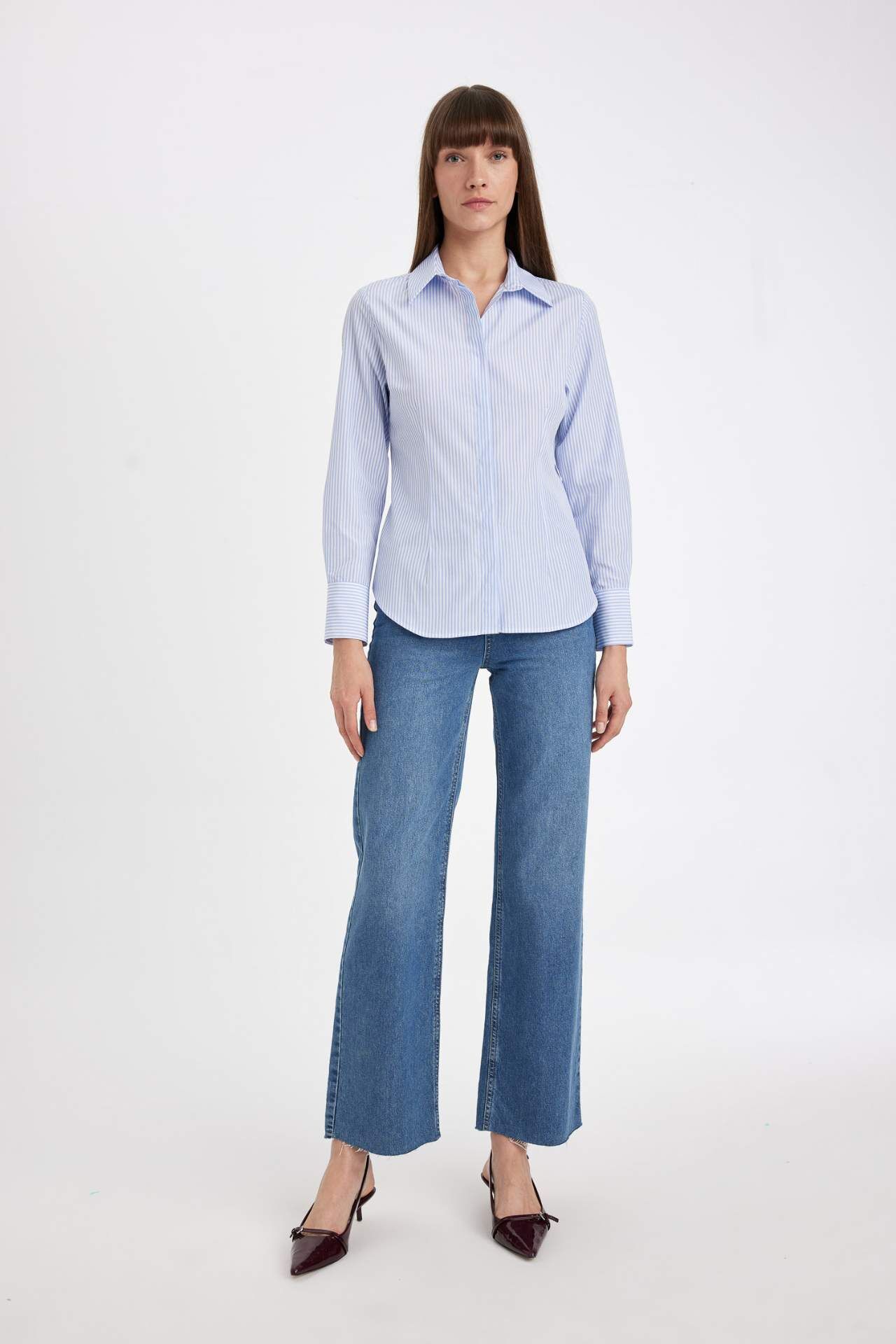 DeFacto Fitted Gömlek Yaka Poplin Uzun Kollu Gömlek