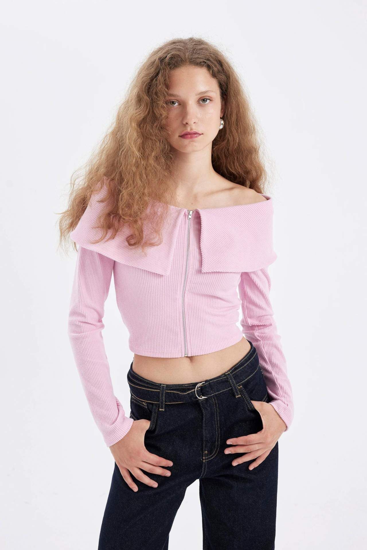 DeFactoFit Fitted Omuzu Açık Fitilli Kaşkorse Hırka