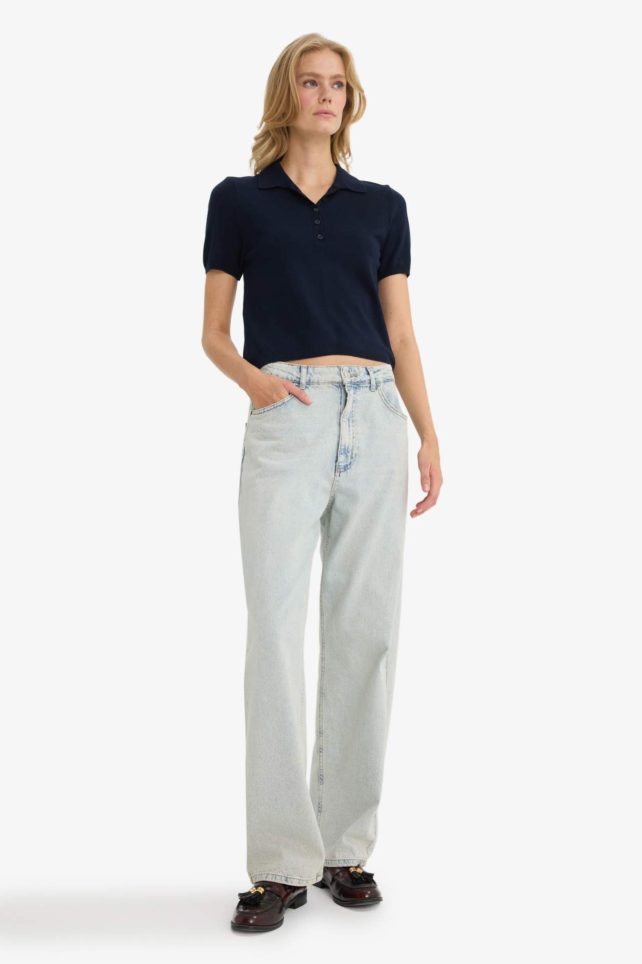 Fitted Polo Yaka Kısa Kollu Triko Kazak