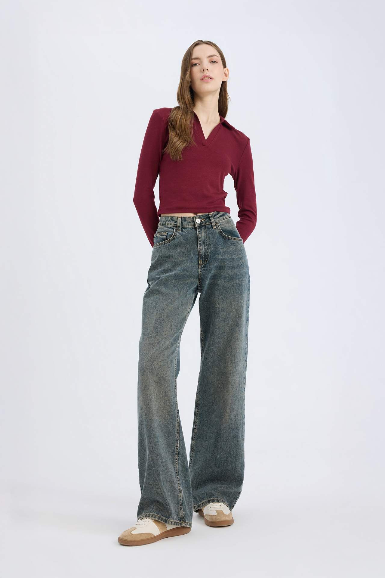 DeFacto Fitted Polo Yaka Modal Uzun Kollu Tişört