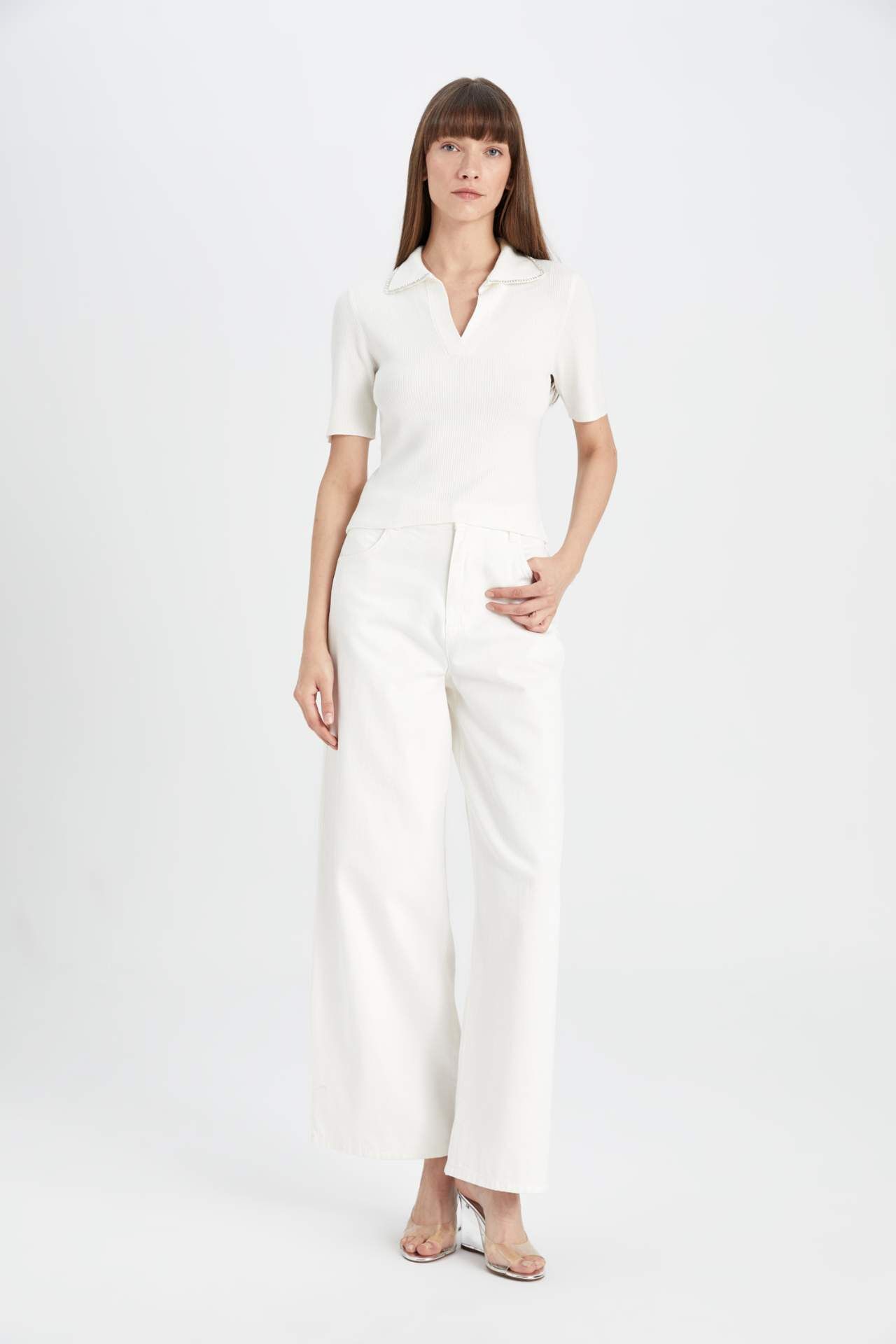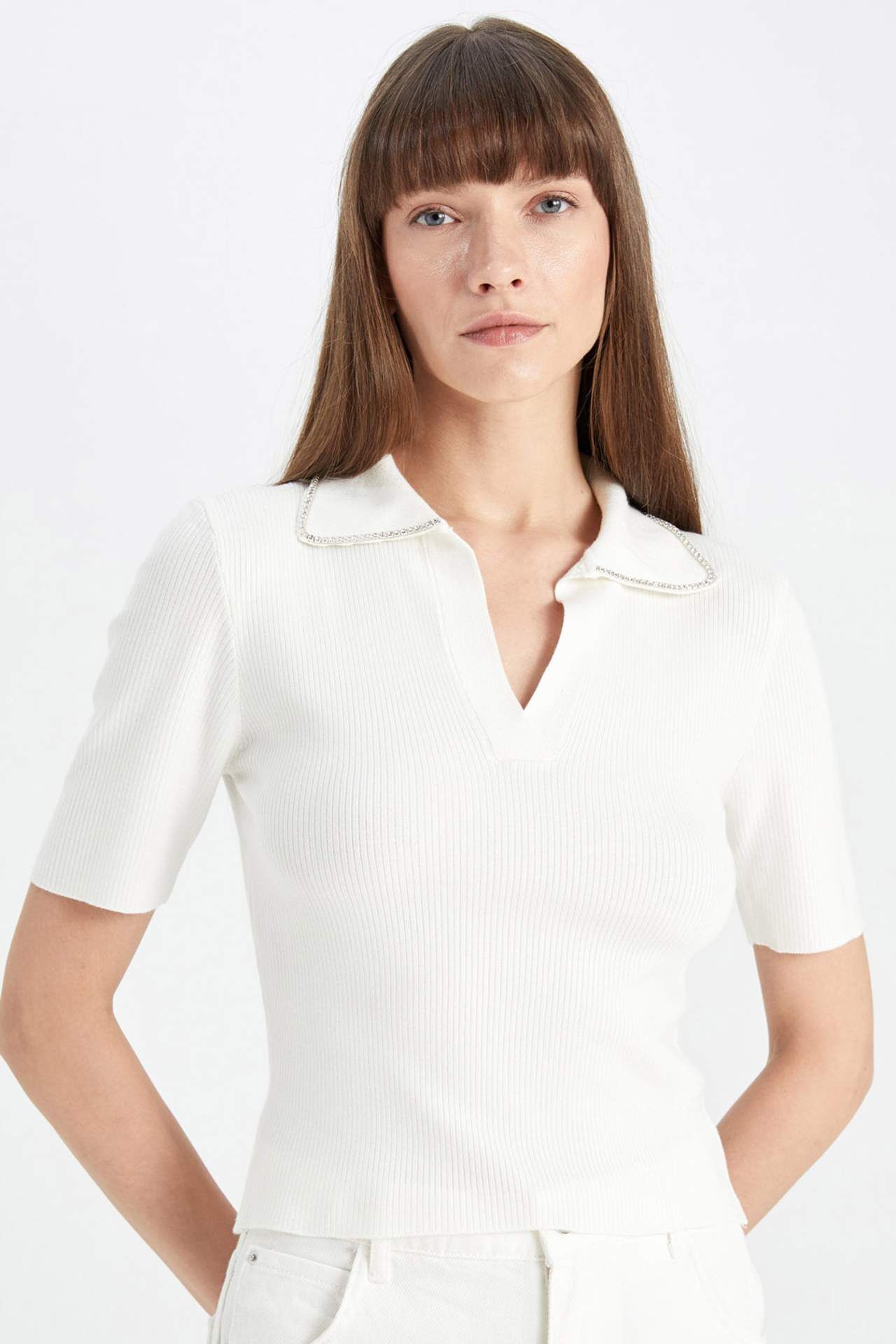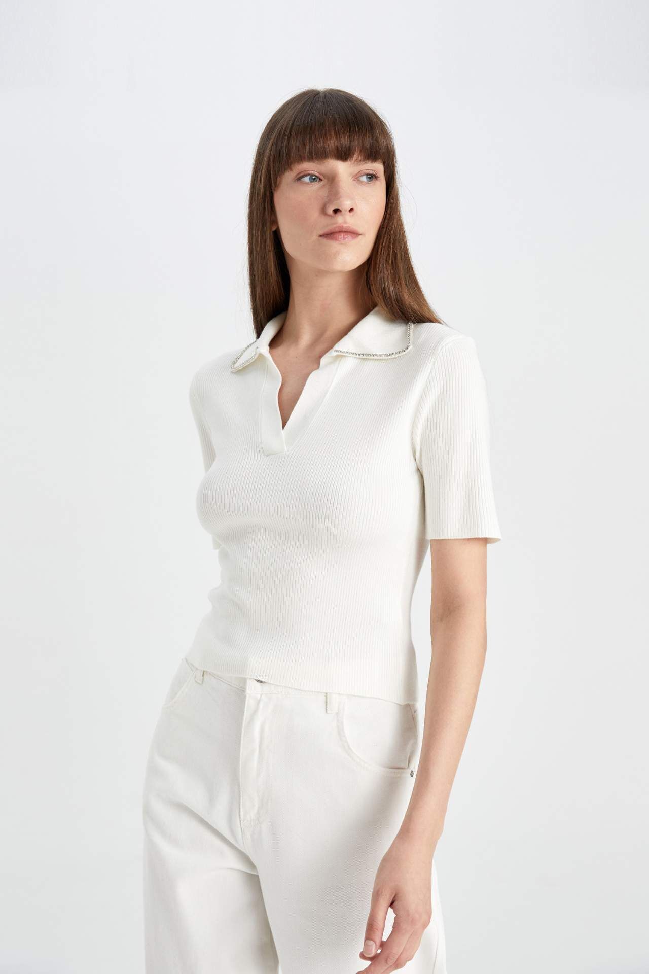 DeFactoFit Fitted Polo Yaka Ribana Kısa Kollu Tişört