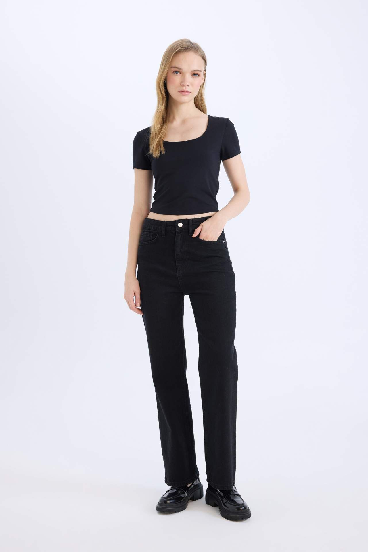 DeFacto Fitted U Yaka Kısa Kollu Siyah Tişört