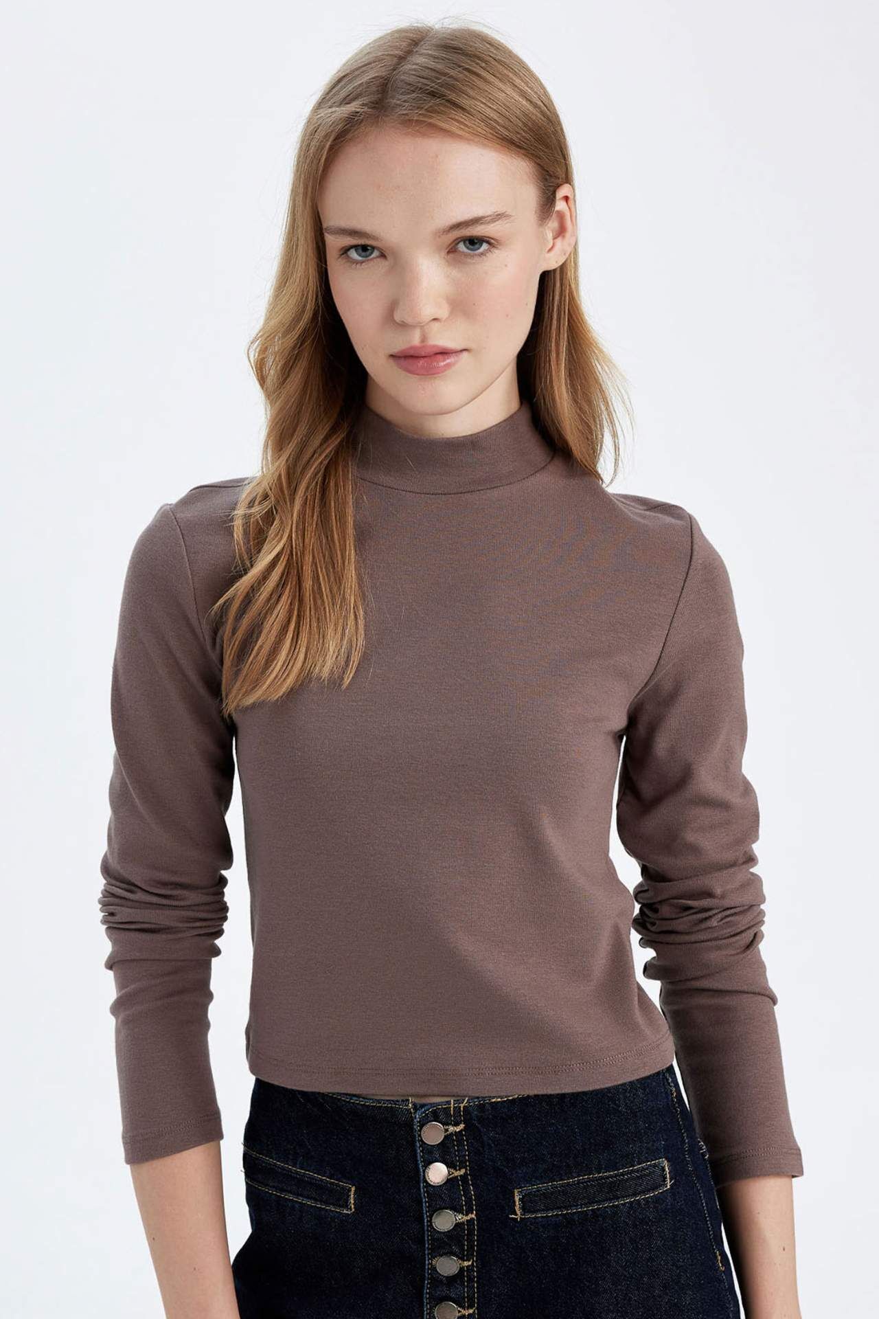 DeFacto Fitted Yarım Balıkçı Yaka Modal Uzun Kollu Tişört D8097AX24WNBN534