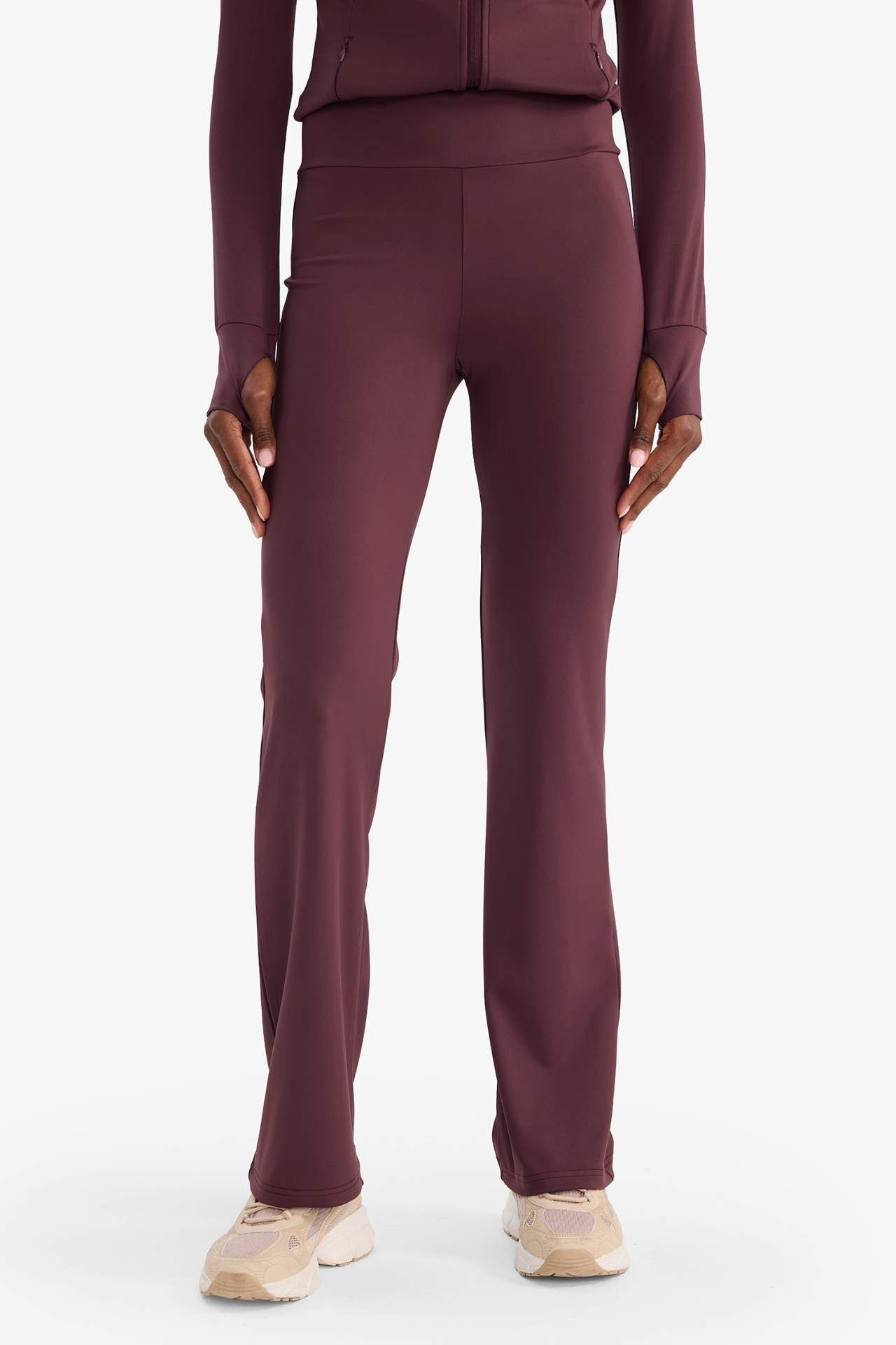 Flare fit ispanyol paça sporcu pantolon, standart boy kesimi ve rahat dokusuyla şıklığı spor konforuyla birleştirir. Geniş paçası sayesinde hareket özgürlüğü sunar, günlük aktivitelerde rahatlıkla tercih edilir. Elastan 7%,Poliester 93% Manken Bedeni: Göğüs: 82 Boy: 1,78 Basen: 88 Bel: 60
