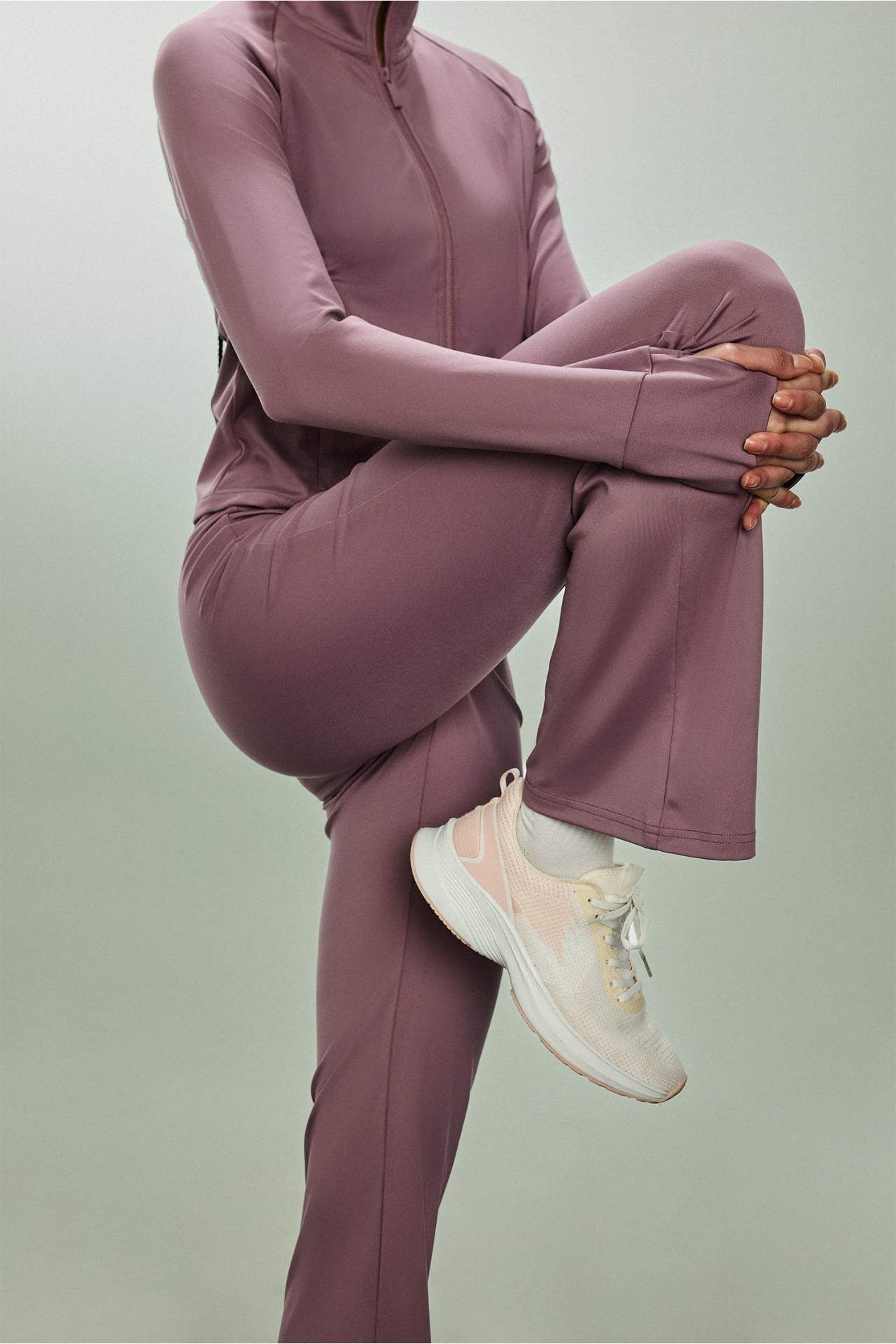Flare fit ispanyol paça sporcu pantolon, standart boy kesimi ve rahat dokusuyla şıklığı spor konforuyla birleştirir. Geniş paçası sayesinde hareket özgürlüğü sunar, günlük aktivitelerde rahatlıkla tercih edilir. Elastan 8%,Poliester 92% Manken Bedeni: Göğüs: 82 Boy: 1,78 Basen: 88 Bel: 60