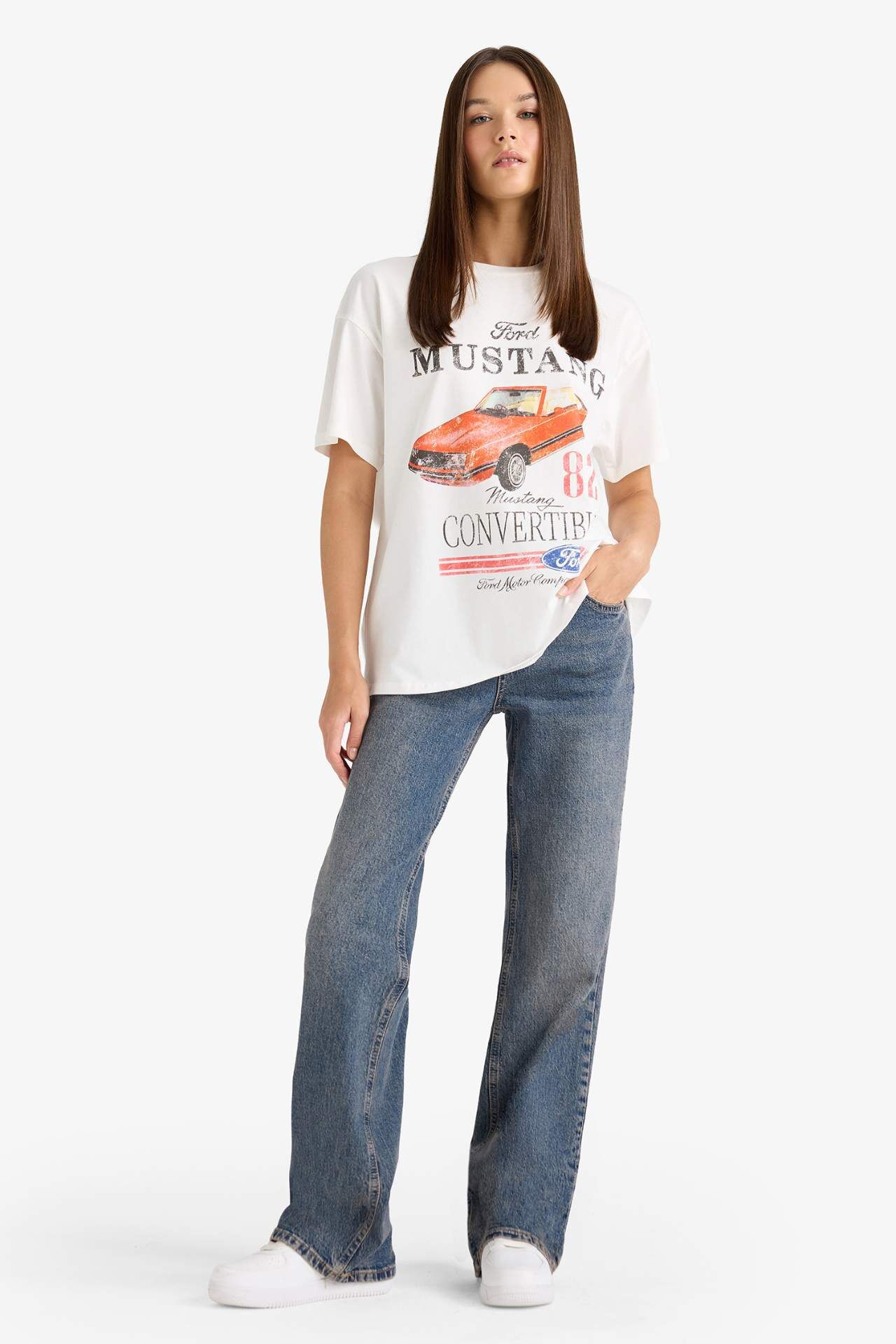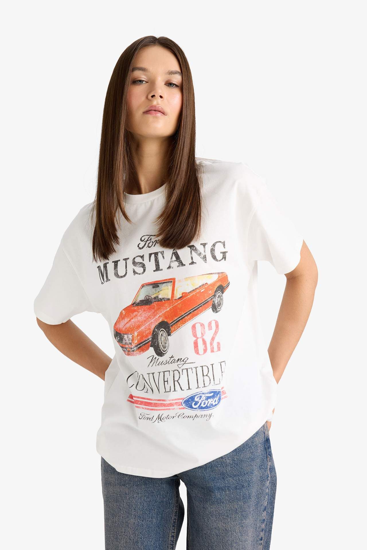 DeFacto Ford Motor Company Oversize Geniş Kalıp Bisiklet Yaka Kısa Kollu Tişört