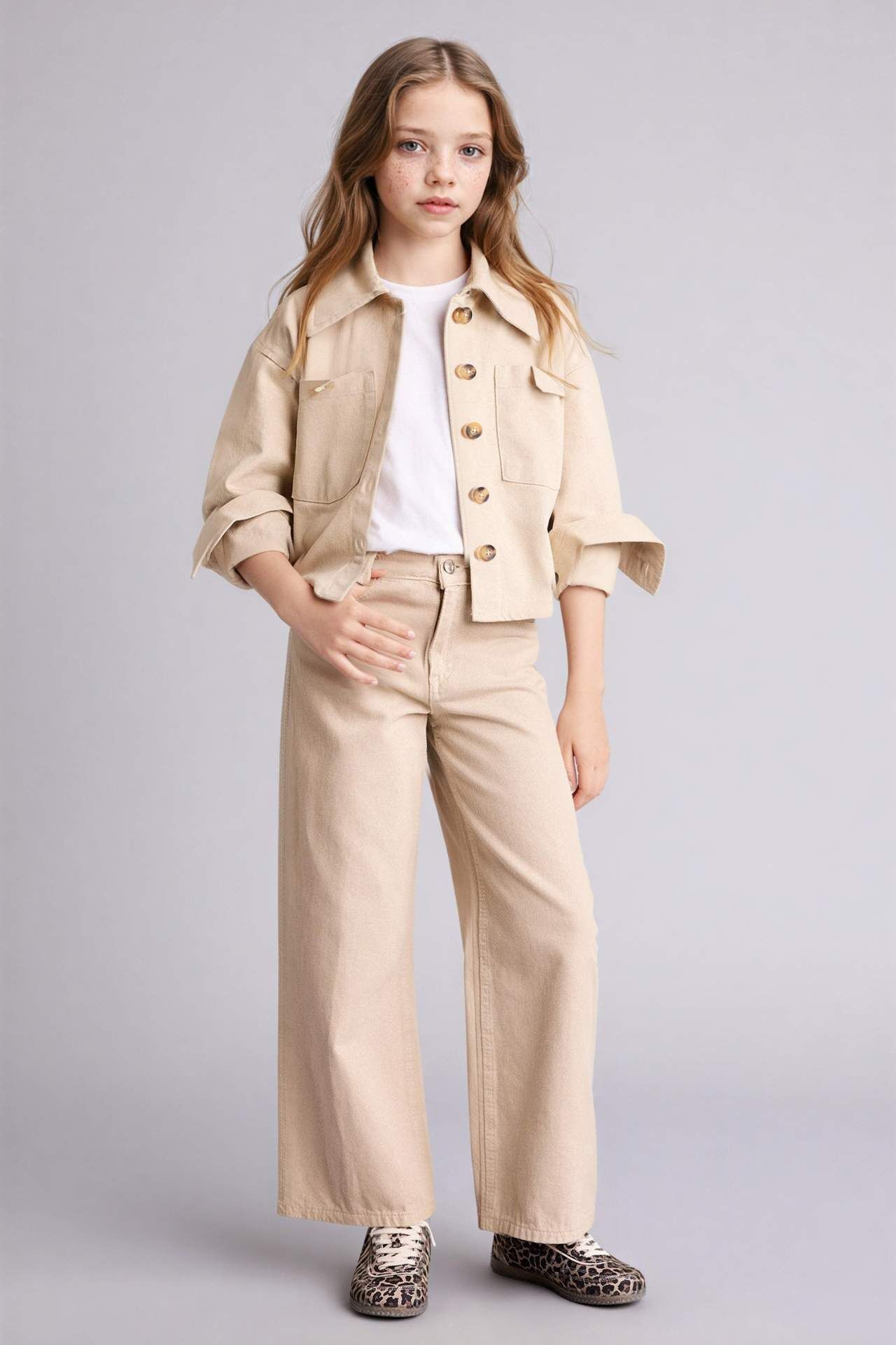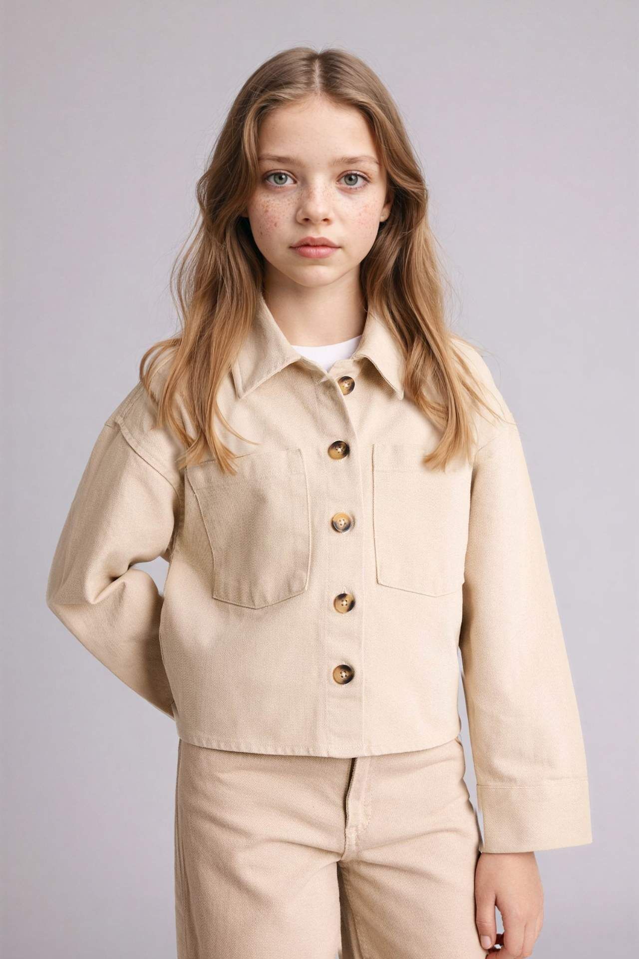 Gabardin kız çocuk gömlek, dayanıklı kumaşı ve rahat kesimiyle günlük kullanım için idealdir. Yumuşak dokusu sayesinde konforlu bir giyim sunar. Pantolon ve eteklerle kolayca kombinlenebilen, zamansız bir parça. Pamuk 100% Manken Bedeni: Göğüs: 62 Boy: 1,24 Basen: 73 Bel: 53
