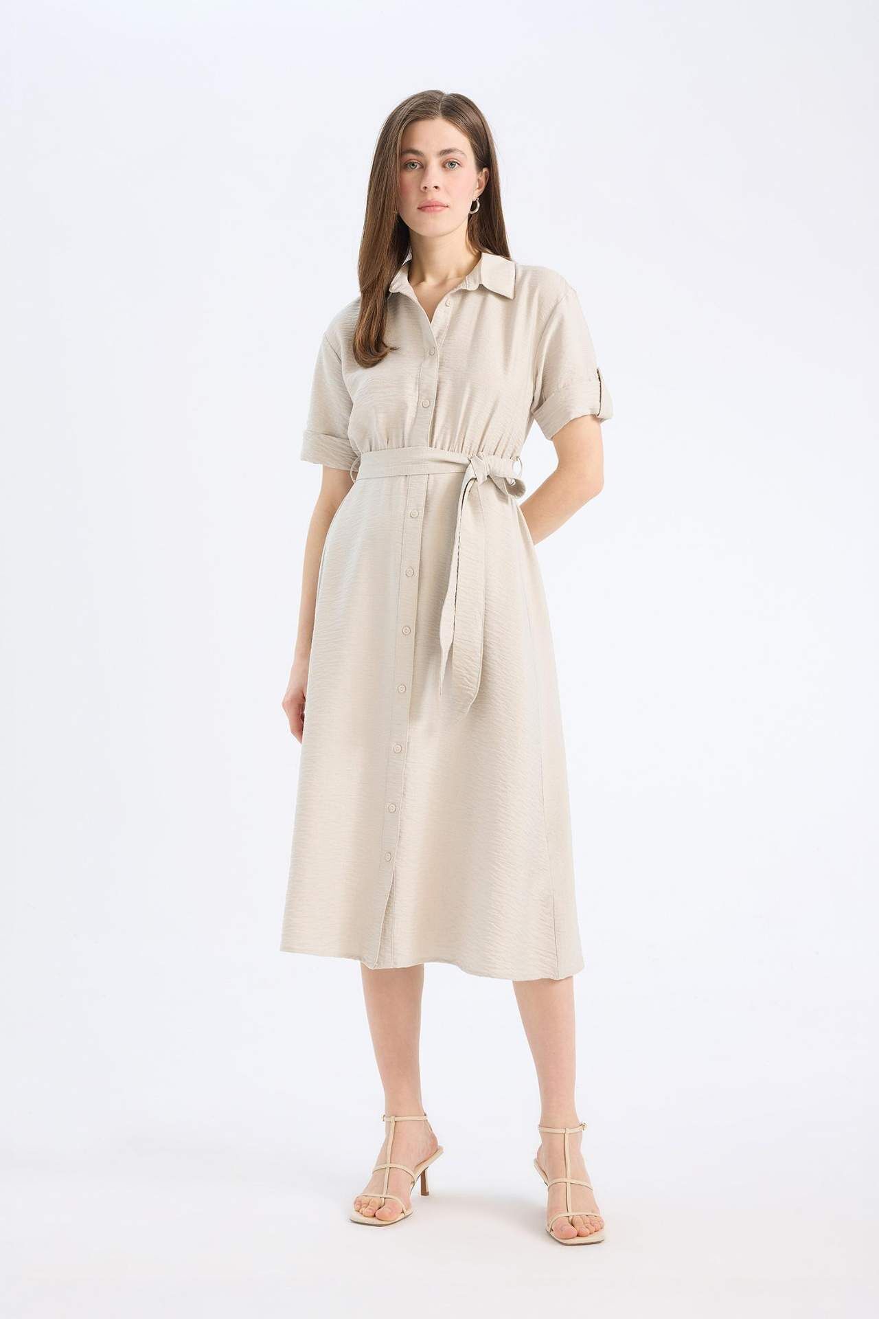 Gömlek Yaka Kısa Kollu Midi Elbise