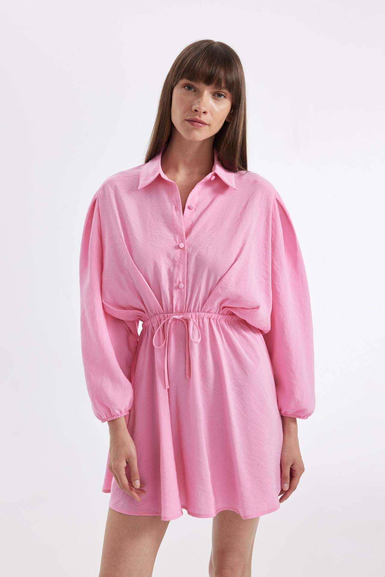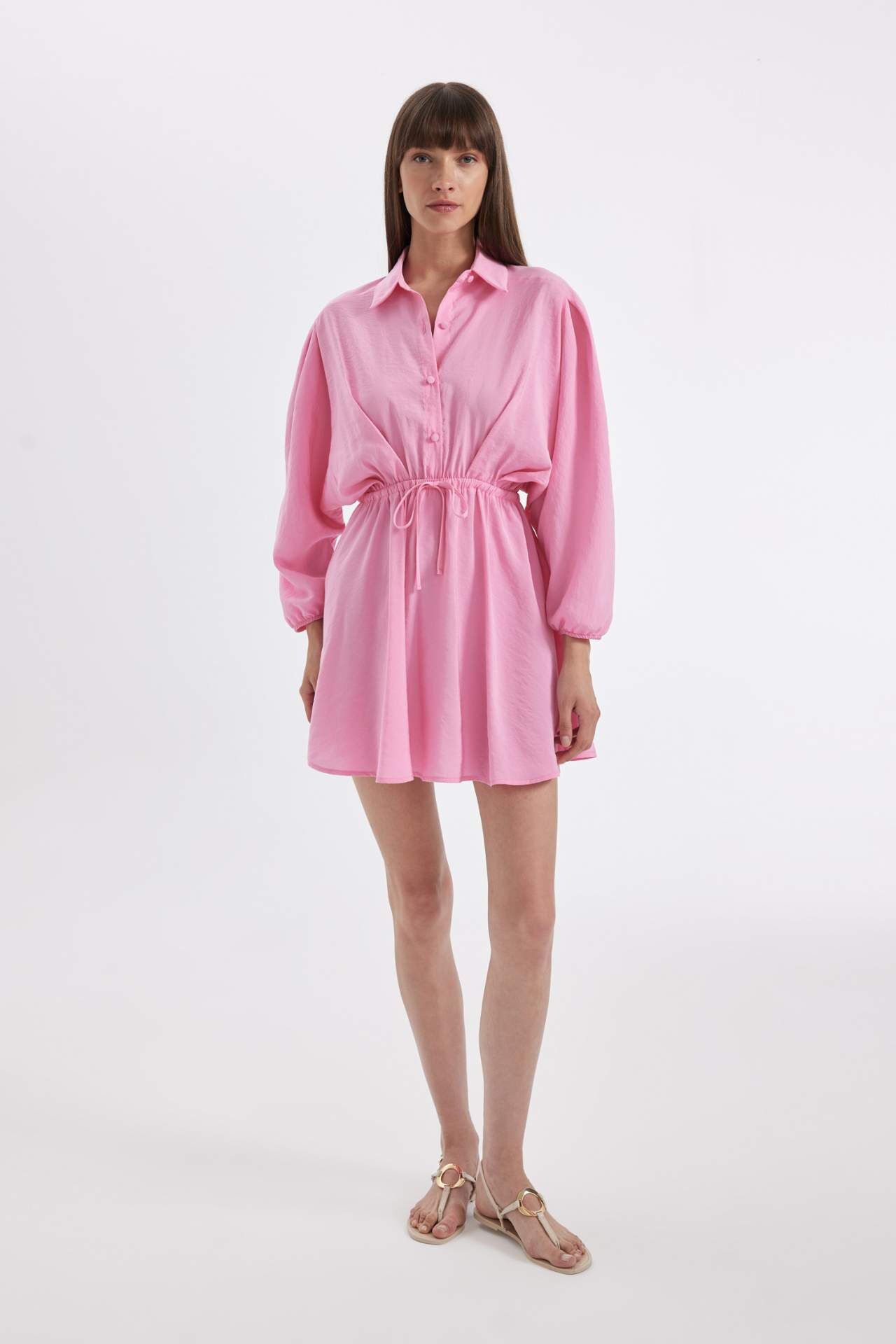 Gömlek Yaka Modal Yarım Kol Midi Elbise