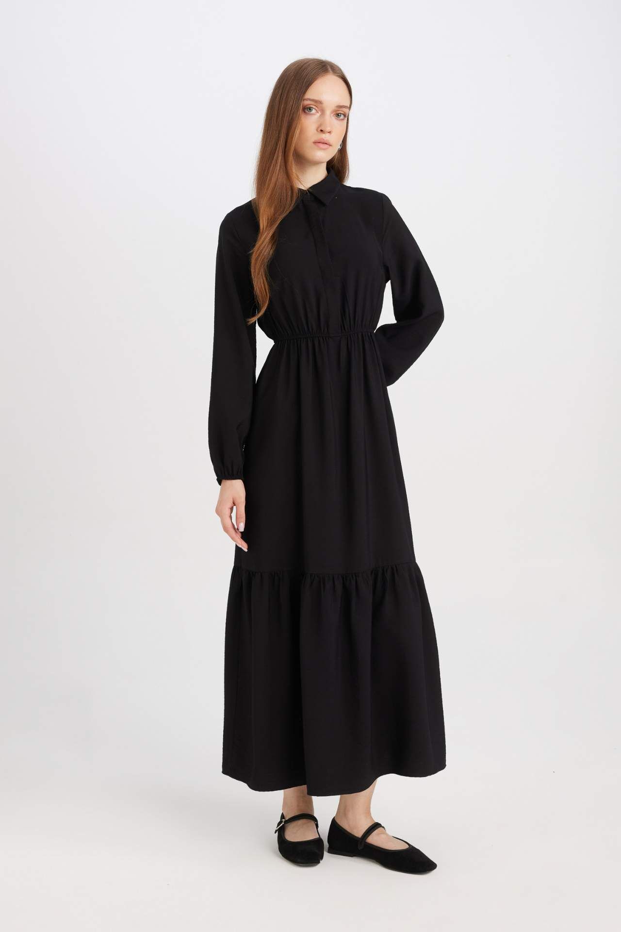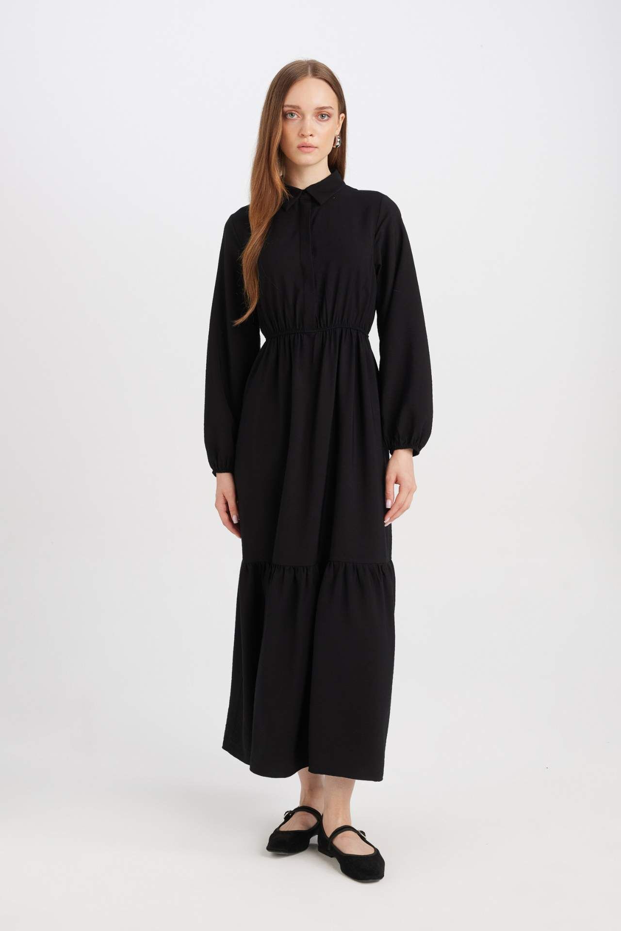 Gömlek Yaka Uzun Kollu Maxi Elbise