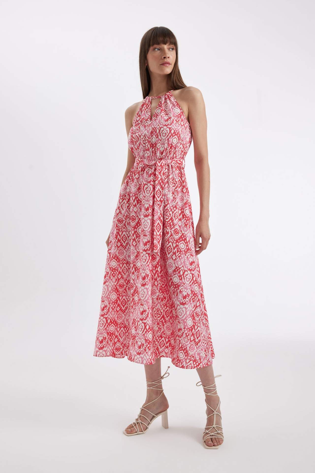 Halter Yaka Baskılı Kolsuz Maxi Elbise