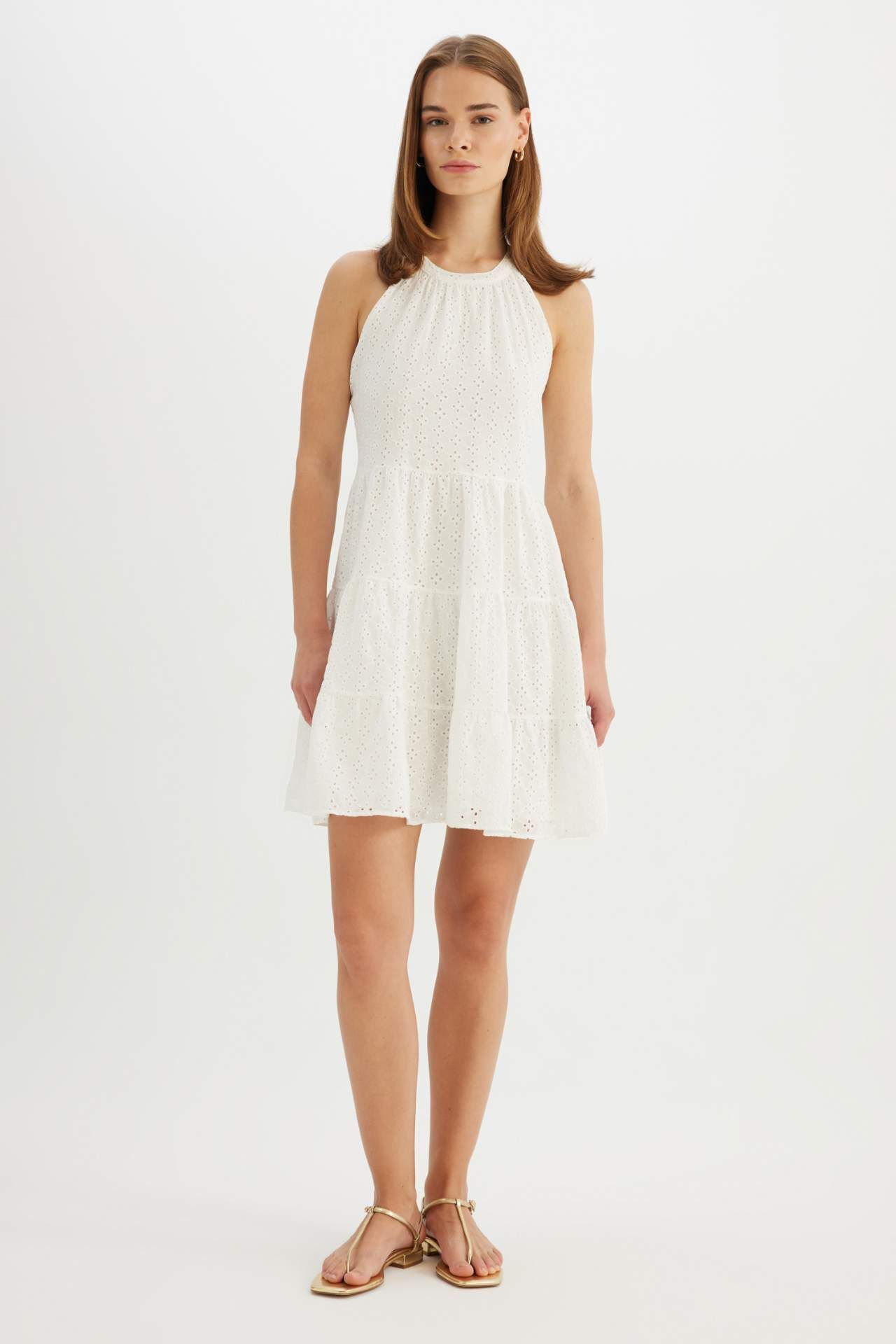 Halter Yaka Vual Kolsuz Midi Elbise
