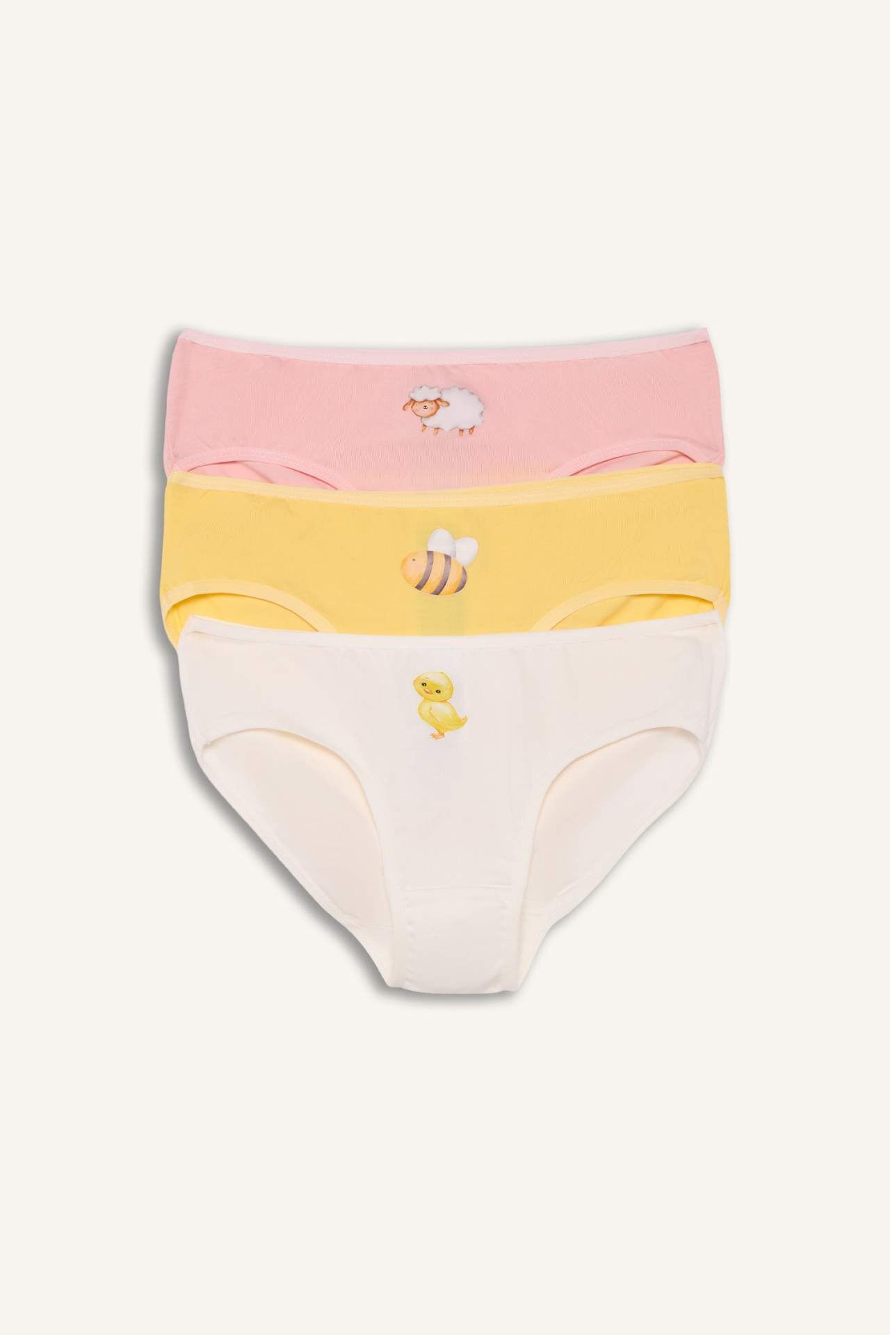 Hayvan Desenli Penye 3'lü Slip Külot Kız Çocuk
