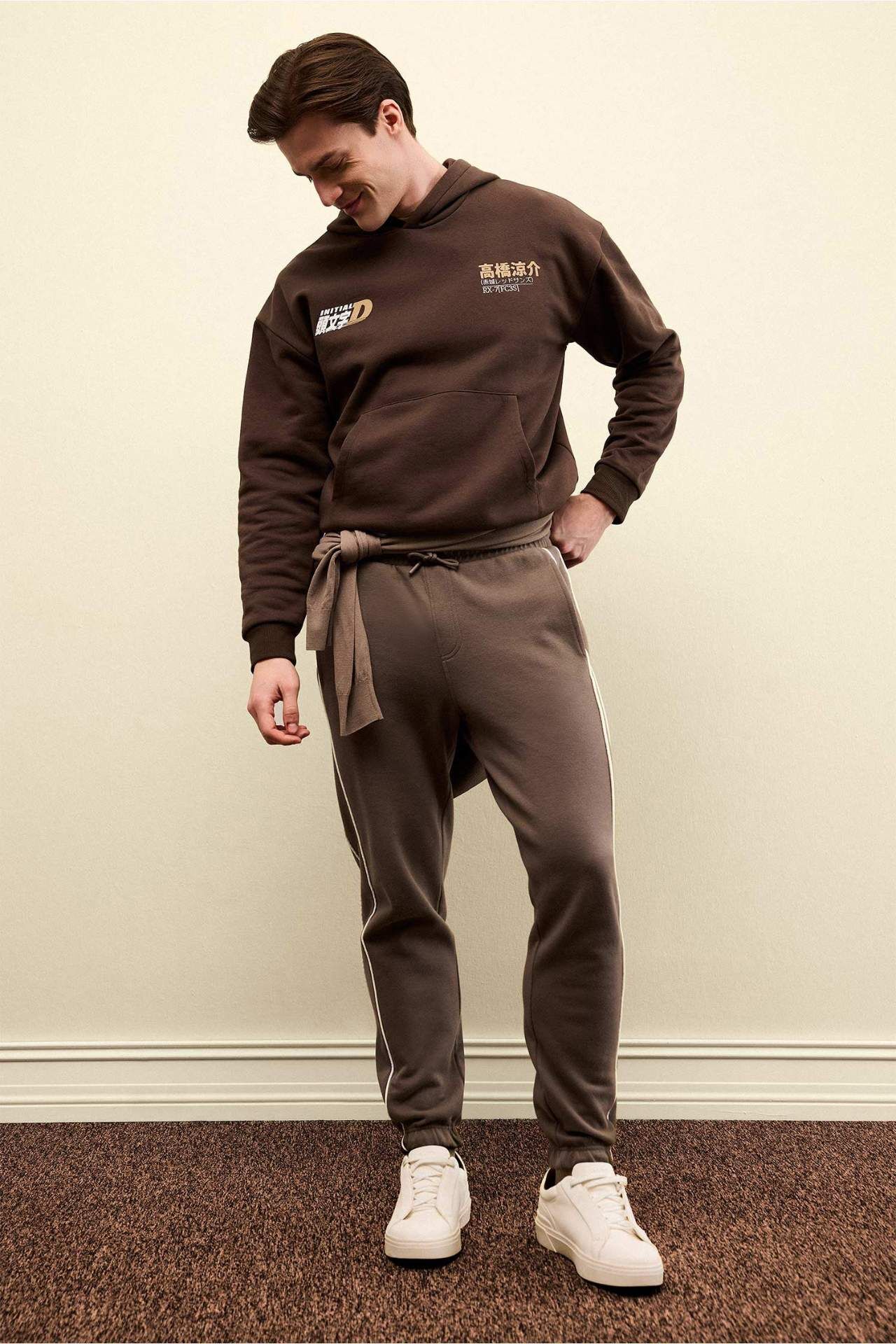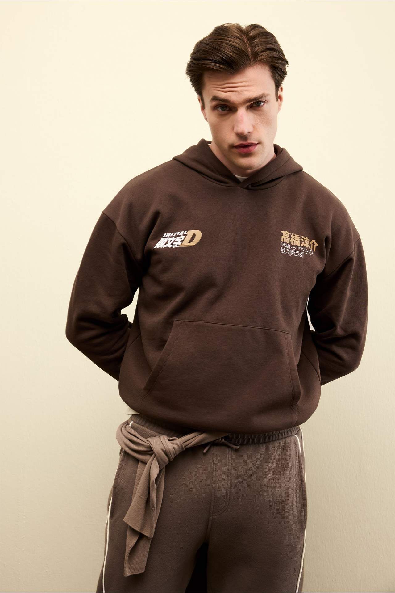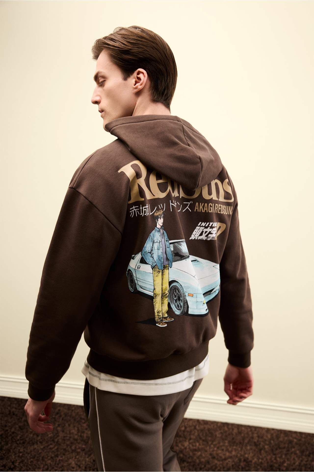 Inıtıal D Boxy Fıt Kapüşonlu Baskılı Kalın Sweatshirt Kumaşı Sweatshirt