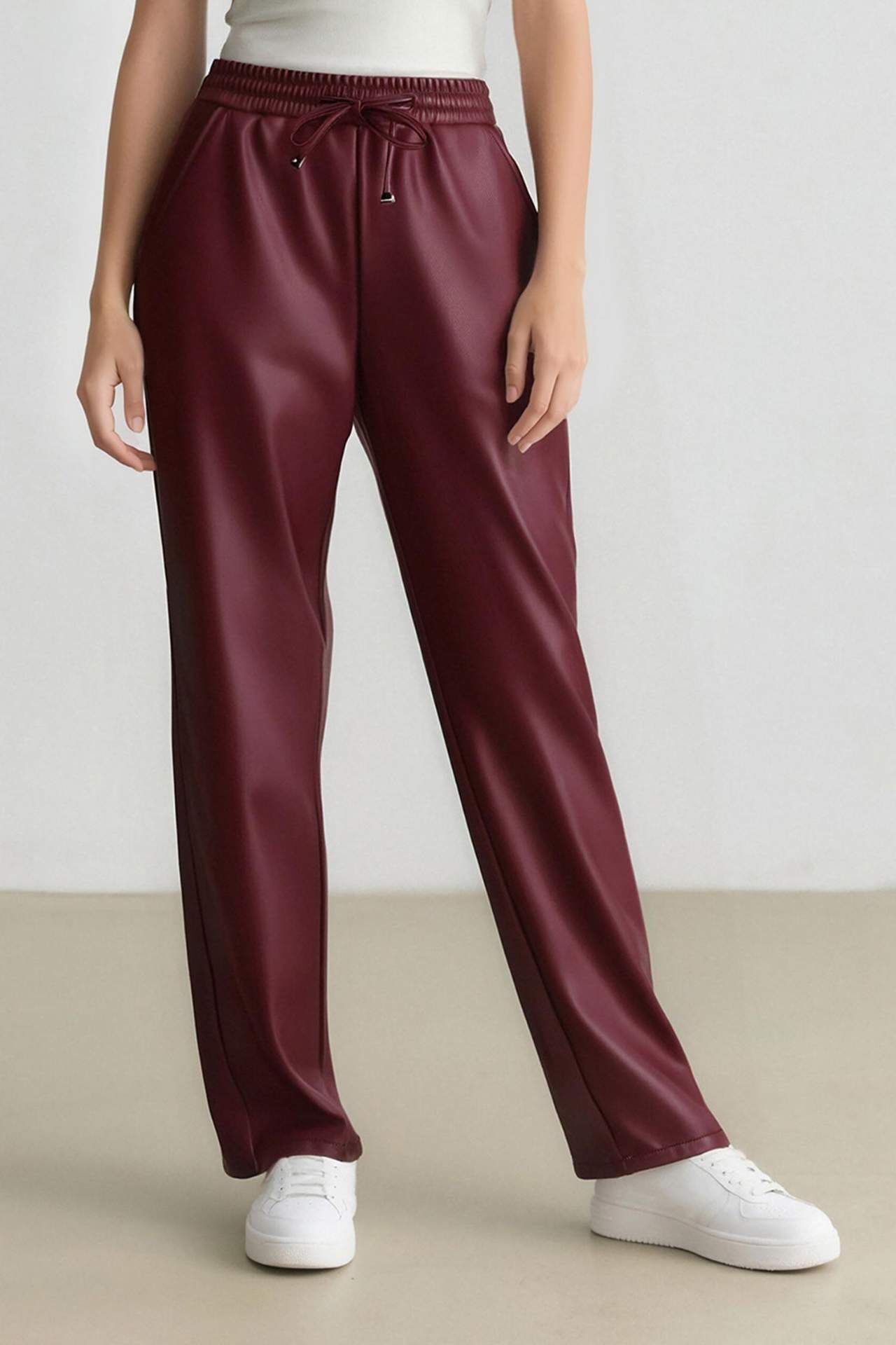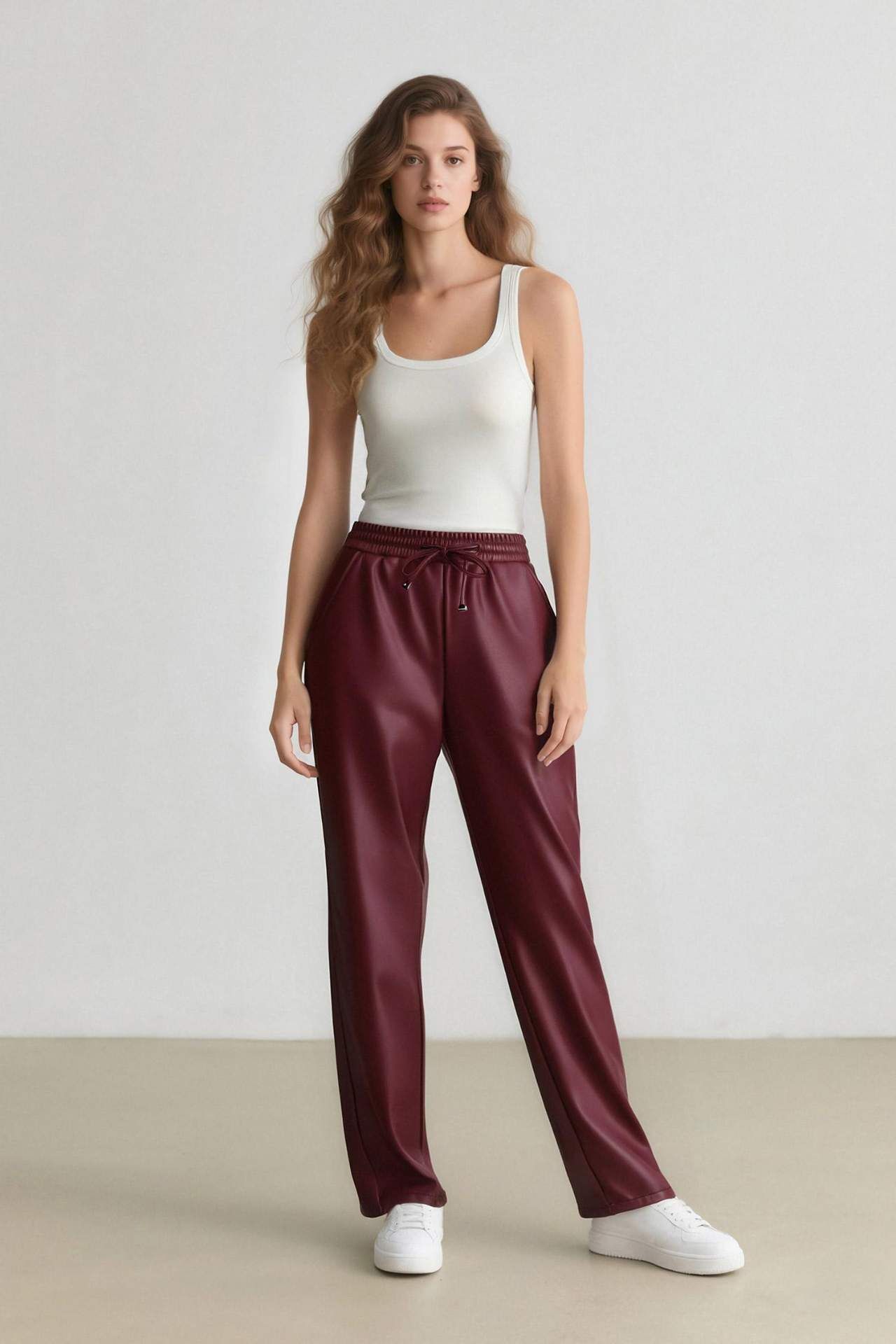 Yüksek bel suni deri pantolon, şıklığı ve rahatlığı bir araya getiriyor. Jogger kesimi ve standart paça tasarımıyla her tarza uyum sağlar. Cepli detayıyla kullanışlı bir seçenek sunar. Gardırobunuzun vazgeçilmezi olmaya aday. Poliester 40%,Poliüretan Deri 60%