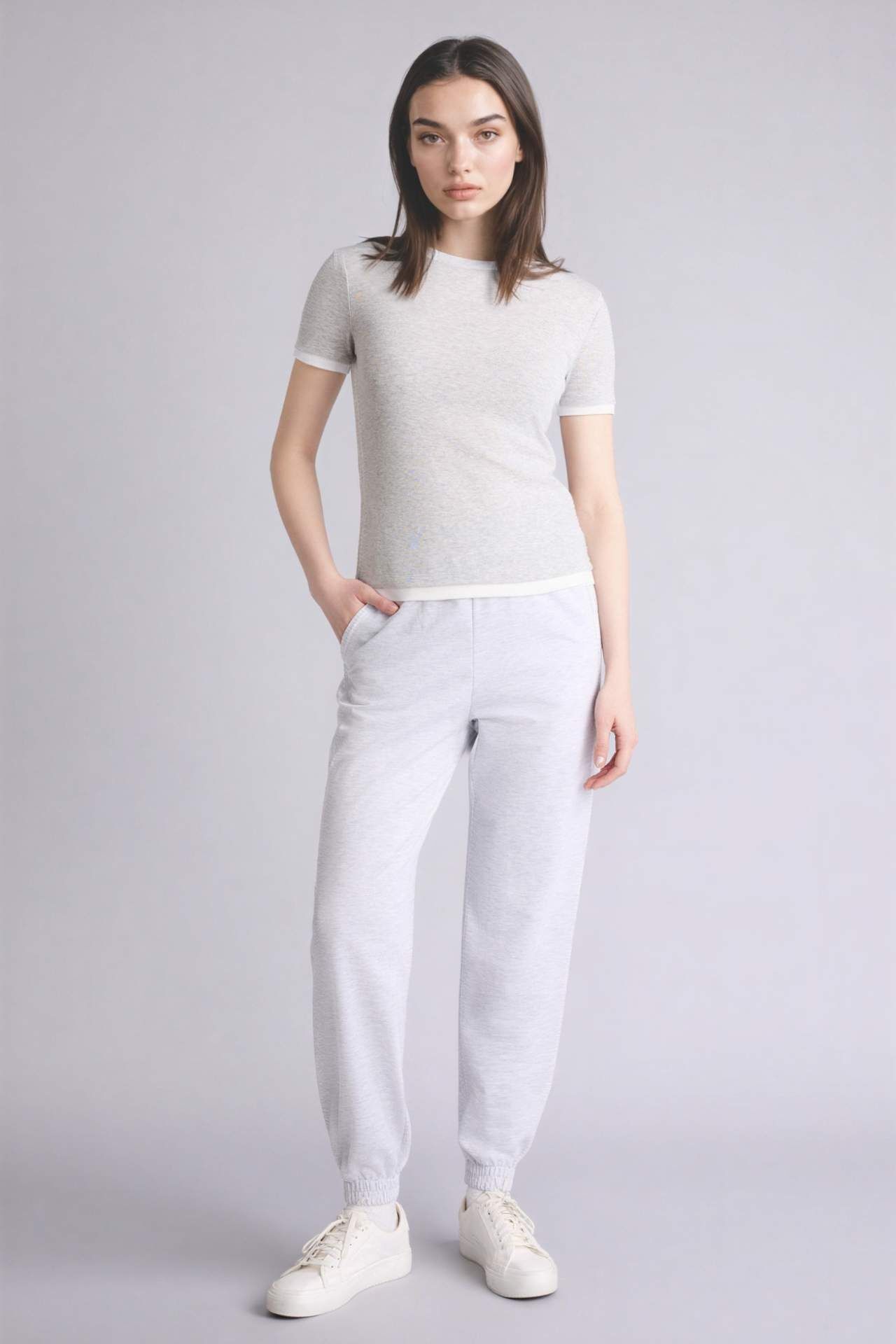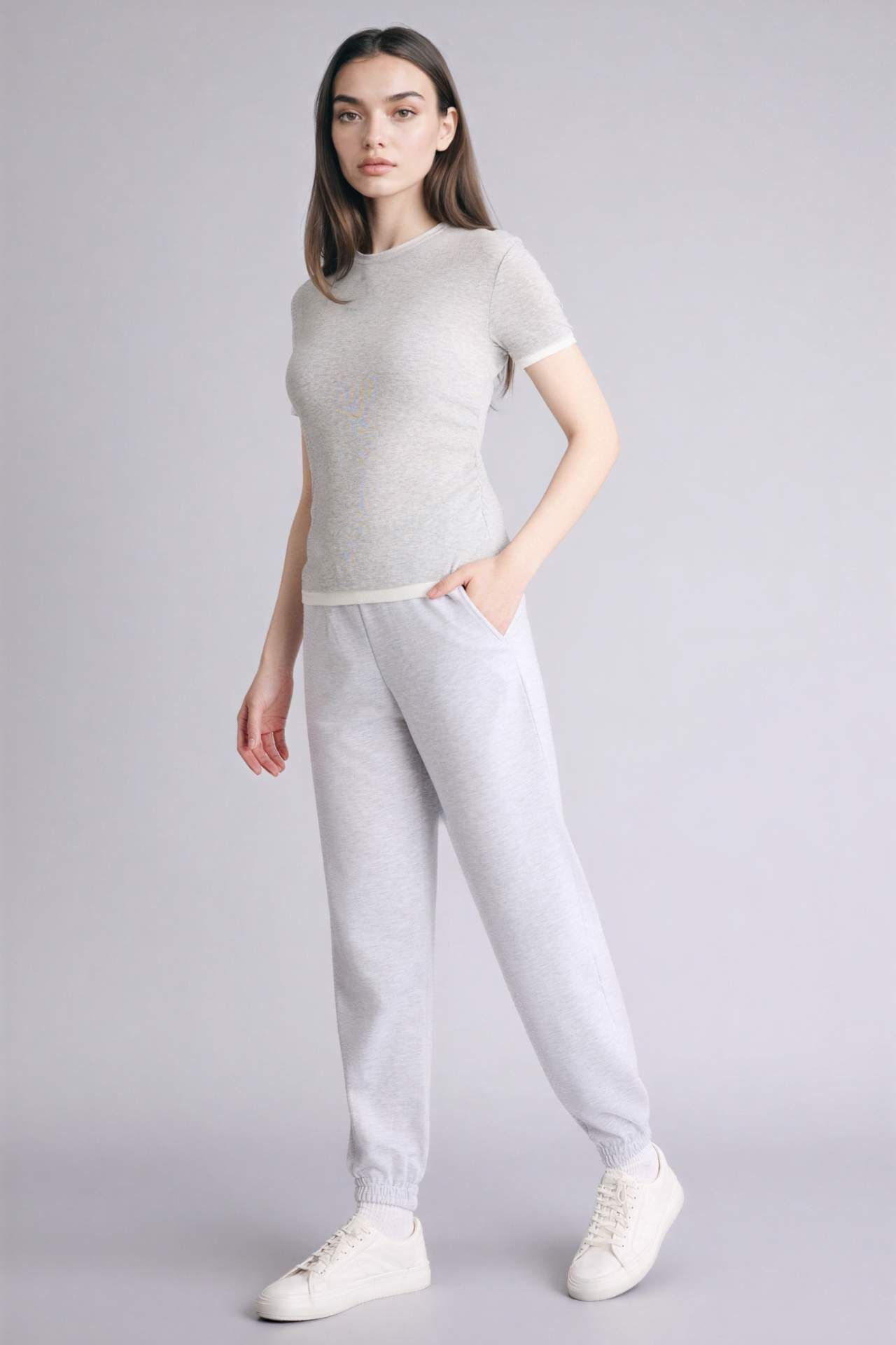 Jogger Fit Basic Eşofman Altı, rahat kesimi ve esnek kumaşıyla gün boyu konfor sunar. Minimal tasarımı, spor ve günlük kombinlerde şık ve pratik bir seçenek oluşturur. Pamuk 39%,Poliester 61% Manken Bedeni: Göğüs: 85 Boy: 1,77 Basen: 89 Bel: 62