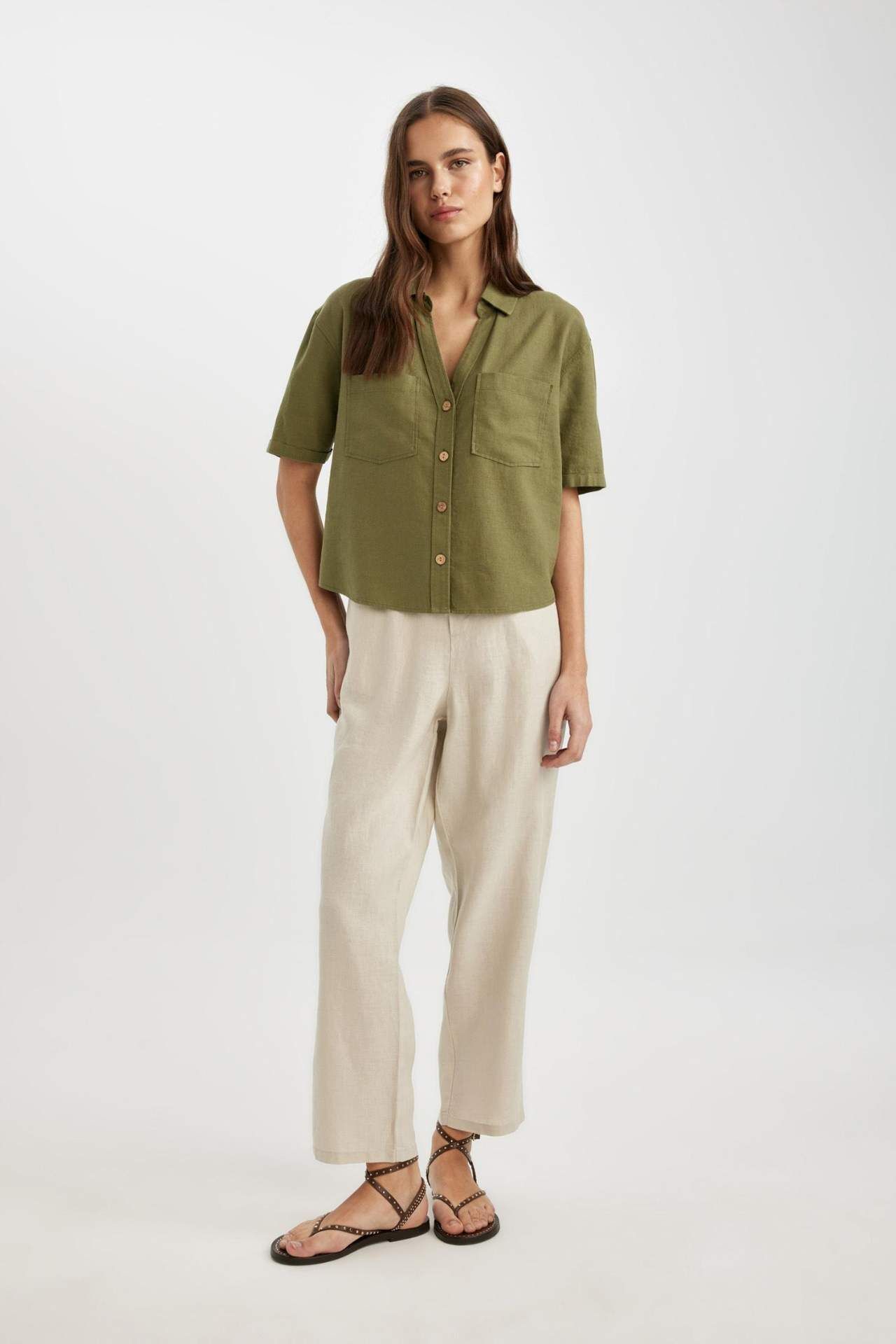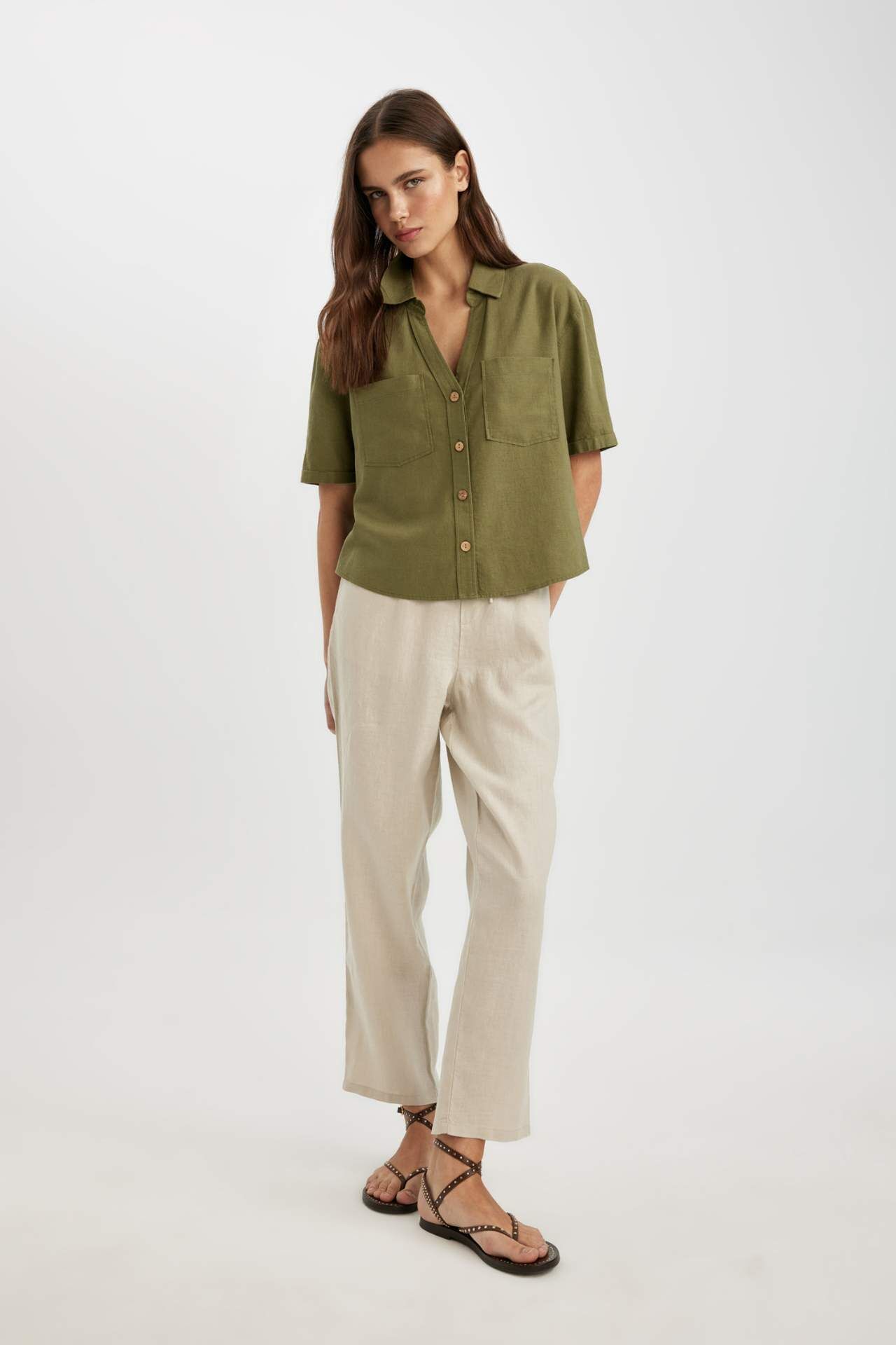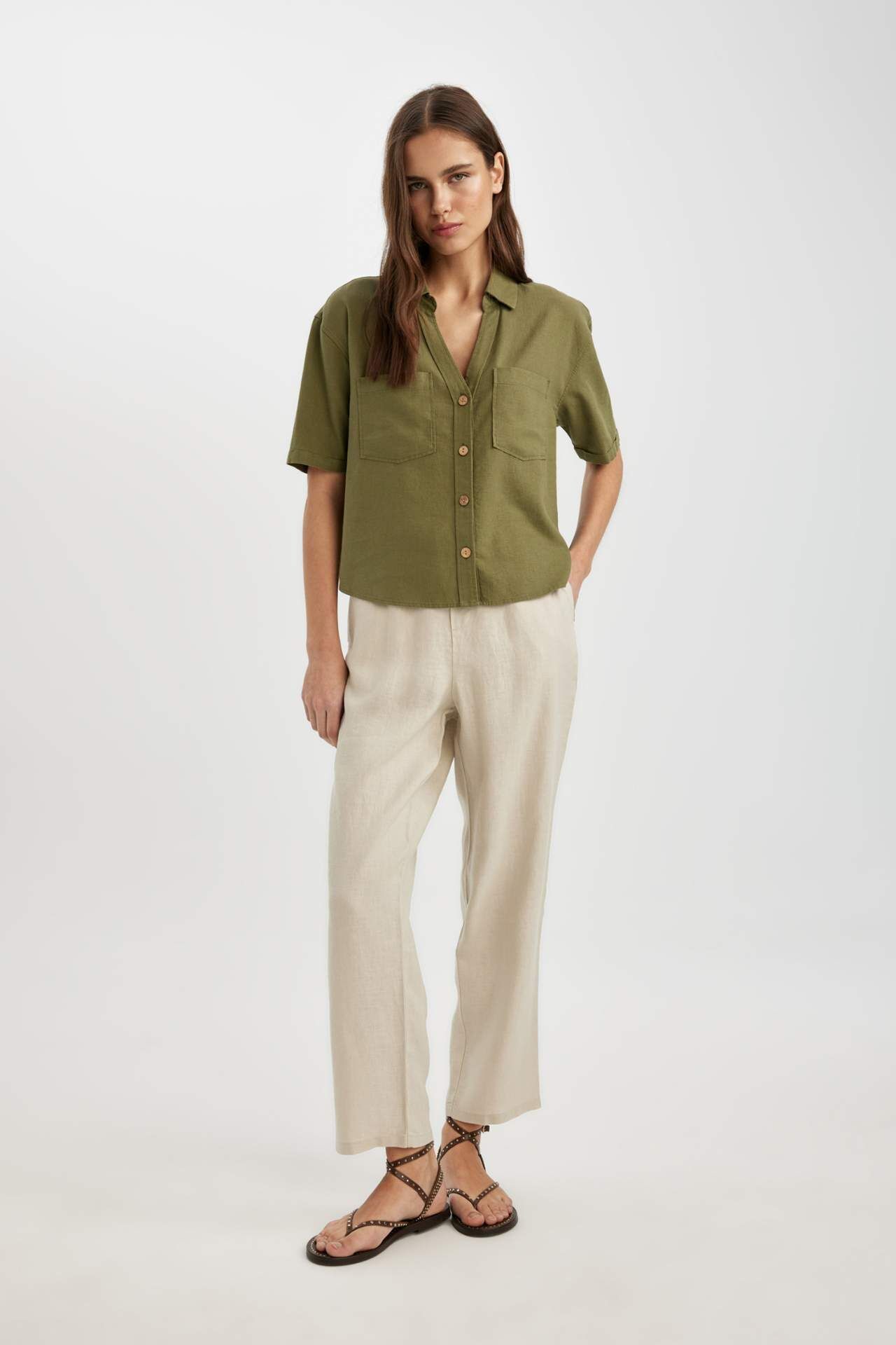 Jogger Fit Cepli Yüksek Bel Kısa Paça Keten Pantolon