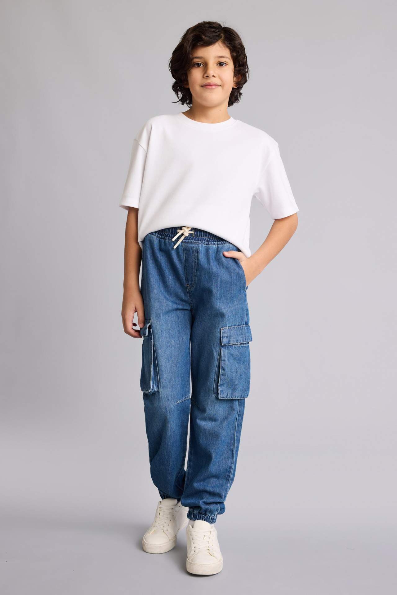 Jogger fit jean pantolon, rahat kesimi ve esnek yapısıyla erkek çocuklara gün boyu hareket özgürlüğü sunar. Lastikli paça detayı sportif bir görünüm kazandırırken, jean dokusu günlük kombinlere uyum sağlar. Hem konforlu hem de kullanışlı bir parçadır. Pamuk 100% Manken Bedeni: Göğüs: 0 Boy: 1,37 Basen: 0 Bel: 0