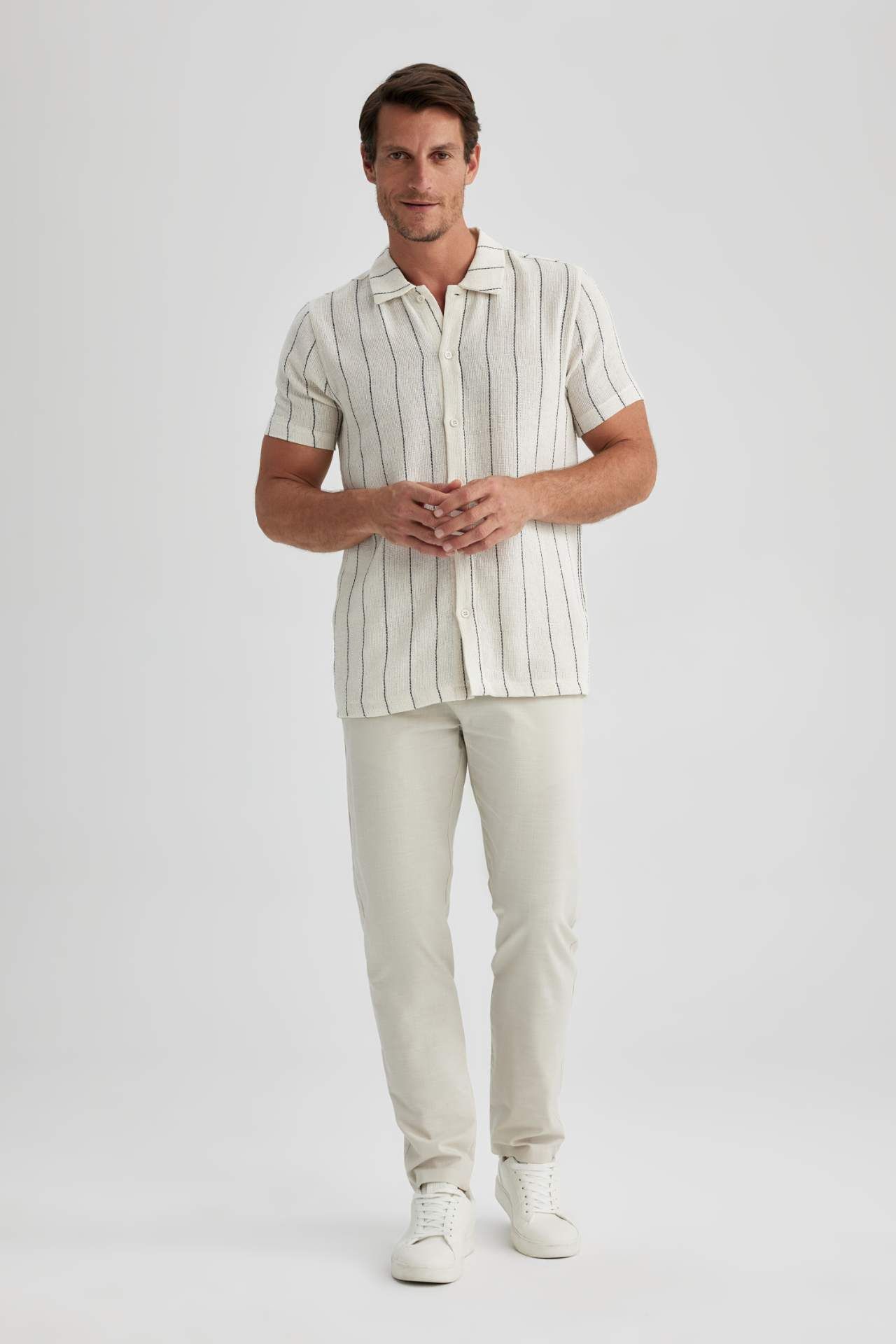 Gün boyunca rahat ve konforlu kullanıma sahip kumaşı, rahat kombinlenir, normal bel, düz kesim, boru paça, stil sahibi tasarımı ile günlük hayatınızda, ofiste, davetlerde gömlekler, tişörtler ve blazer ceketler ile harika görünen kombinler oluşturabileceğiniz DeFacto Erkek Jogger Fit Basic Chino Pantolon. Pamuk 100% Manken Bedeni: Göğüs: 100 Boy: 1,88 Basen: 96 Bel: 84