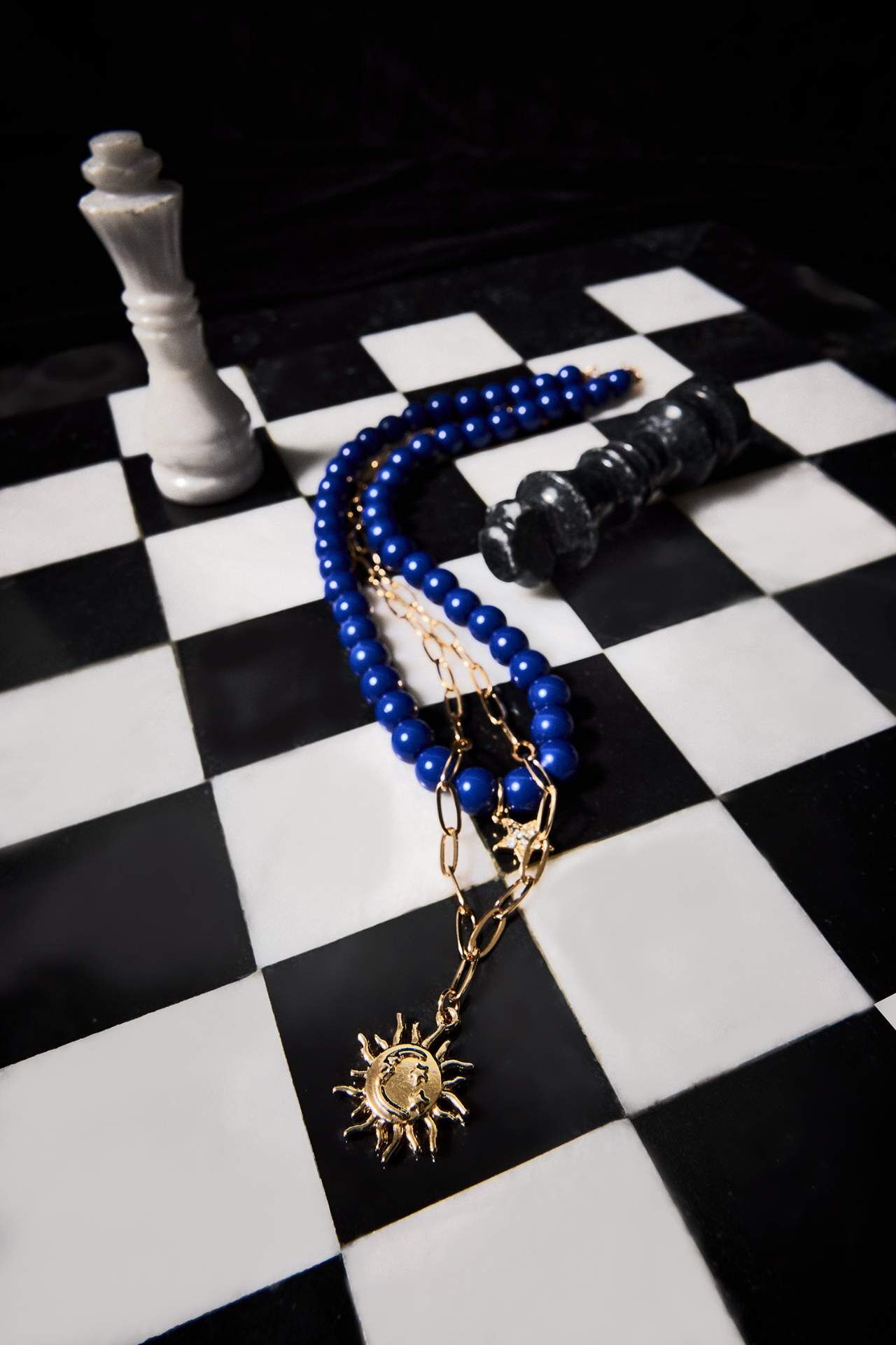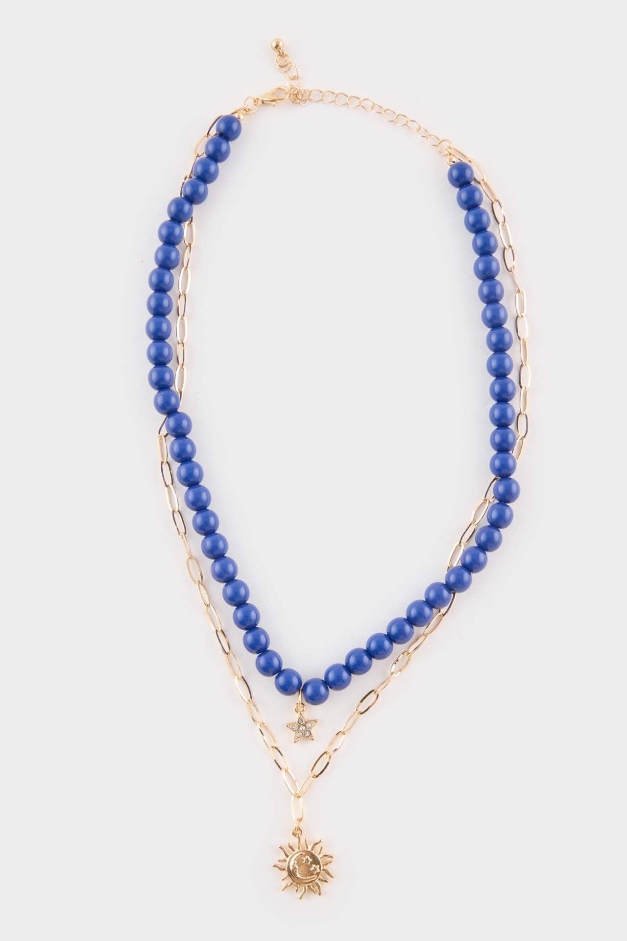 DeFacto Kadın 2'li Lacivert Taşlı Gold Kolye