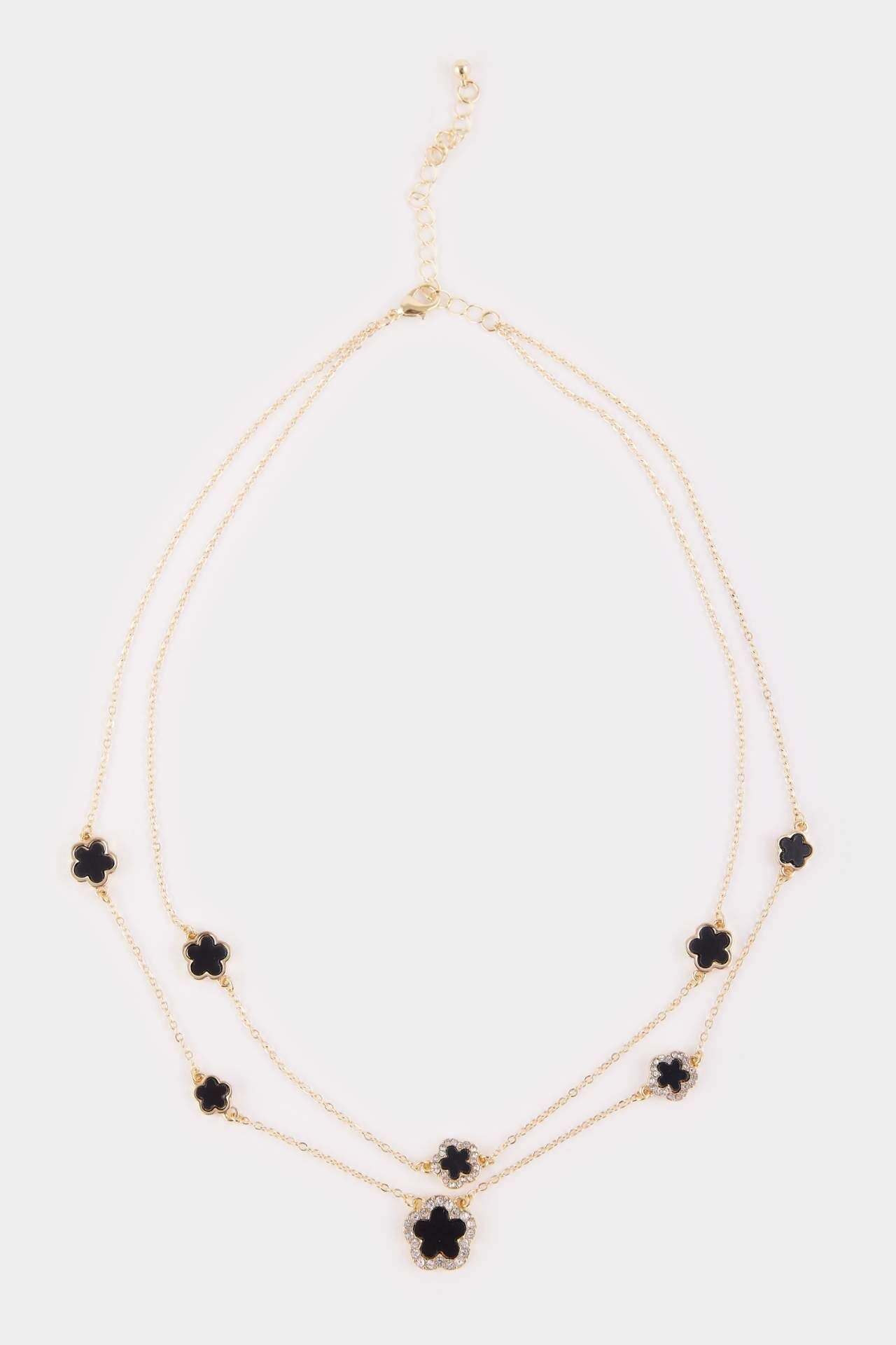 Kadın 2'li Siyah Yonca Detaylı Kolye