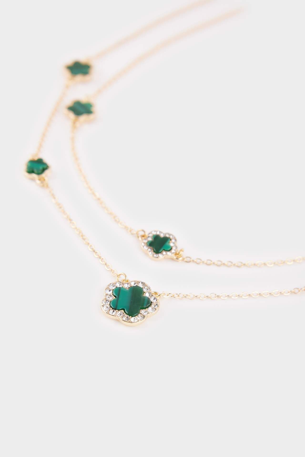Kadın 2'li Yeşil Yonca Detaylı Kolye