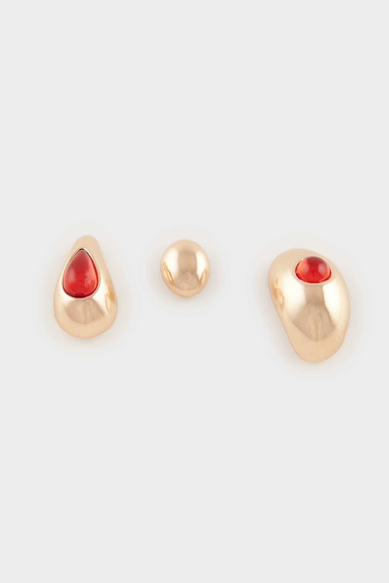 DeFacto Kadın 3'lü Kırmızı Taşlı Küpe