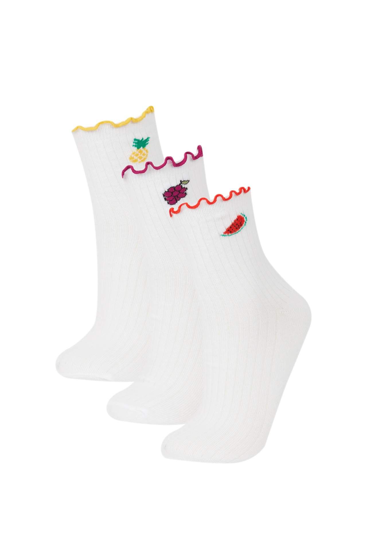 DeFacto Kadın 3'lü Pamuklu Soket Çorap E2065AXNSWT1