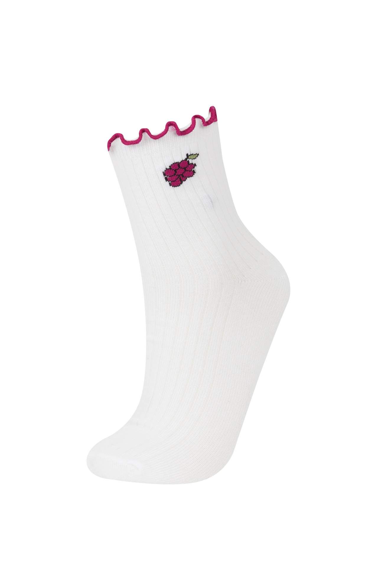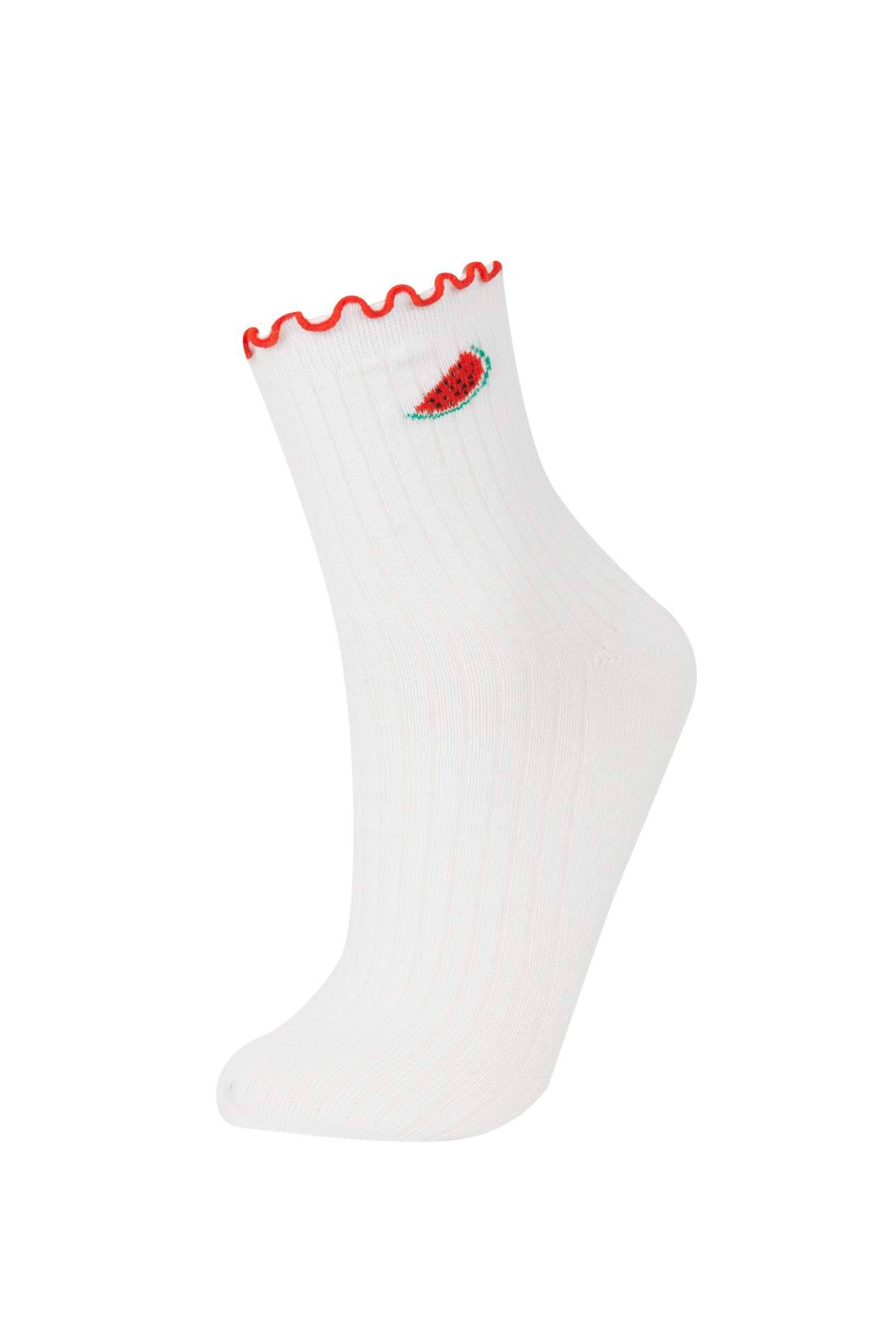 Yetişkin kadınlar için temel çeşit soket çoraplarından oluşan 3'lü meyve desenli çorap seti. Pamuklu kumaştan üretilmiştir. Beyaz renkte ve meyve desenli stiliyle öne çıkıyor. Tüm mevsimlerde kullanıma uygundur. Kaliteli ve şık seçenekler için tercih edebilirsiniz. Pamuk 73%,Poliamid 24%,Elastan 3%,Pamuk 73%,Poliamid 24%,Elastan 3%,Pamuk 73%,Poliamid 24%,Elastan 3%