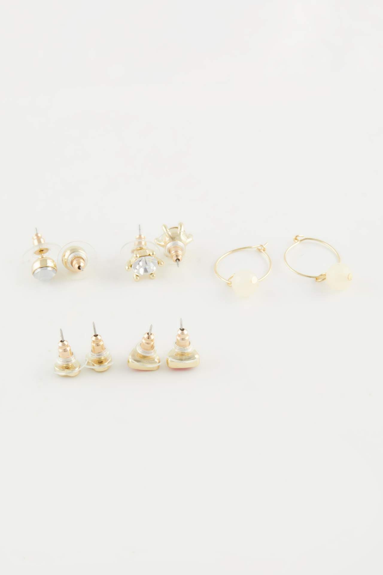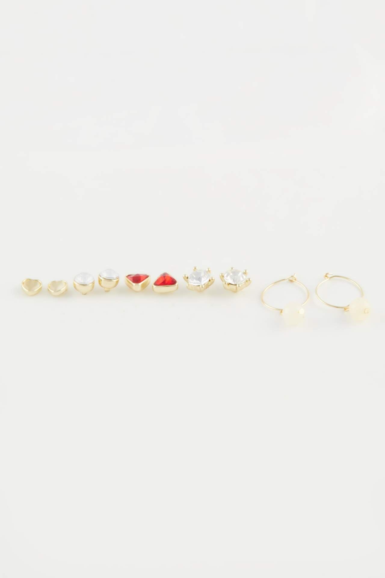 Kadın 5'li Gold Küpe seti, zarif altın tonlu tasarımlarıyla her stile uyum sağlayan şık bir aksesuar seçeneğidir. Farklı boyut ve formlardaki küpeler, günlük kullanımda veya özel davetlerde kolayca kombinlenebilir. Tek setle birden fazla stil oluşturmak isteyenler için ideal bir tercihtir. Çinko 100%,Çinko 100%,Çinko 100%,Çinko 100%,Cam 10%,Reçine 10%,Çinko 70%,Pirinç 10%