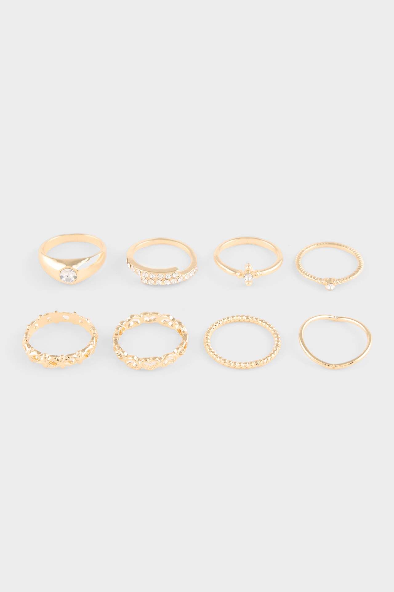 Kadın Yüzük Seti, zarif ve modern tasarımlarıyla kombinlerinizi tamamlar. Günlük kullanıma uygun yapısı sayesinde şıklığı ve rahatlığı bir arada sunar. Metal 100%,Metal 100%,Metal 100%,Cam 20%,Metal 80%,Cam 20%,Metal 80%,Metal 100%,Cam 40%,Metal 60%,Cam 40%,Metal 60%