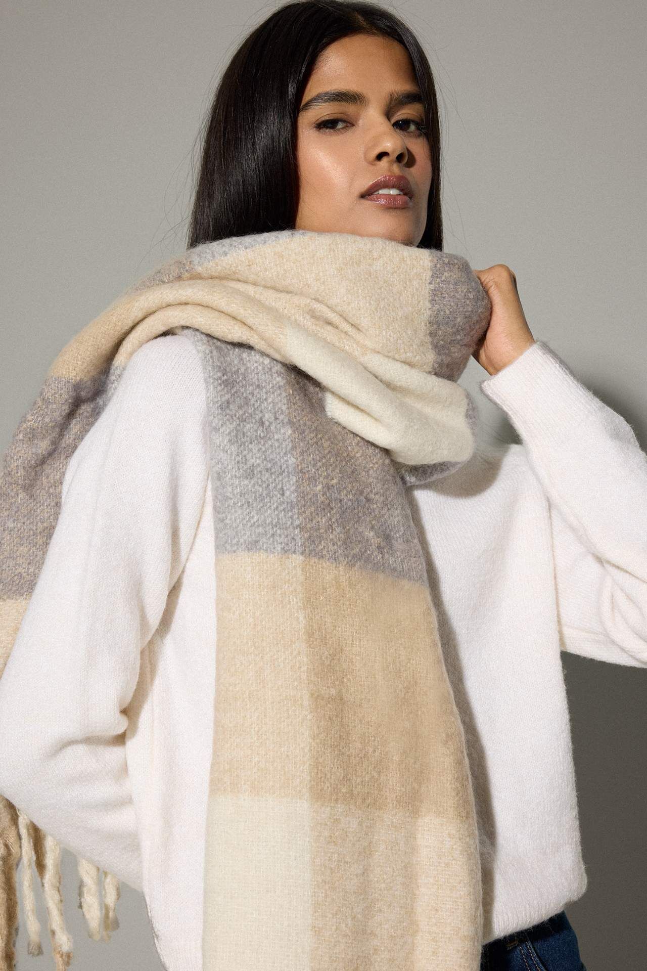 Kadın Atkı, kaliteli kumaşı ve rahat yapısıyla hem sıcak tutar hem de şıklık katar. Minimal tasarımı sayesinde her kombine uyum sağlar ve stilinizi tamamlar. Soğuk havalarda vazgeçilmez bir aksesuar olarak öne çıkar. Akrilik 75%,Poliester 25%,Akrilik 75%,Poliester 25% Manken Bedeni: Göğüs: 74 Boy: 1,74 Basen: 89 Bel: 60