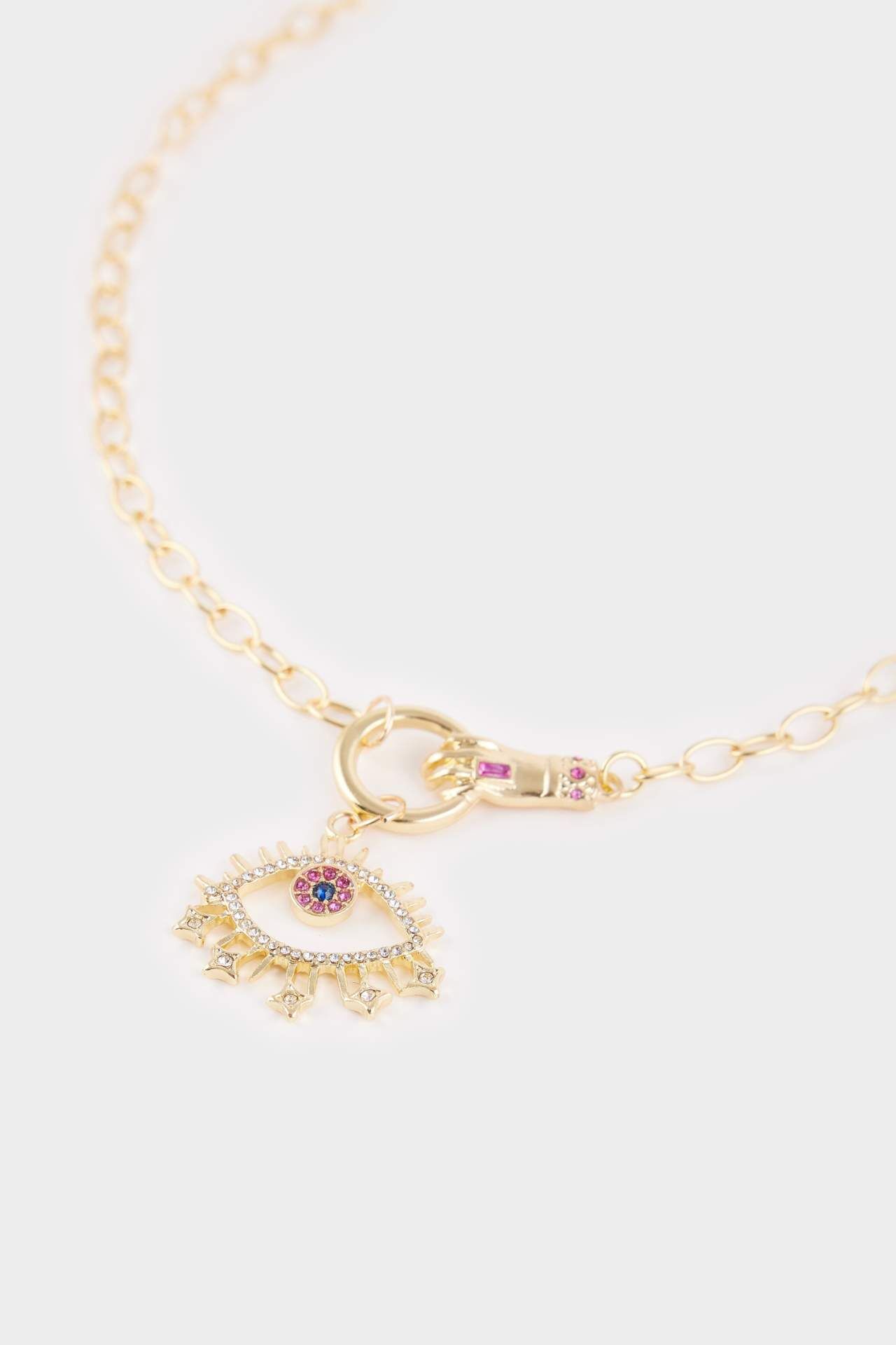 Kadın Çelik Pembe Göz Detaylı Kolye