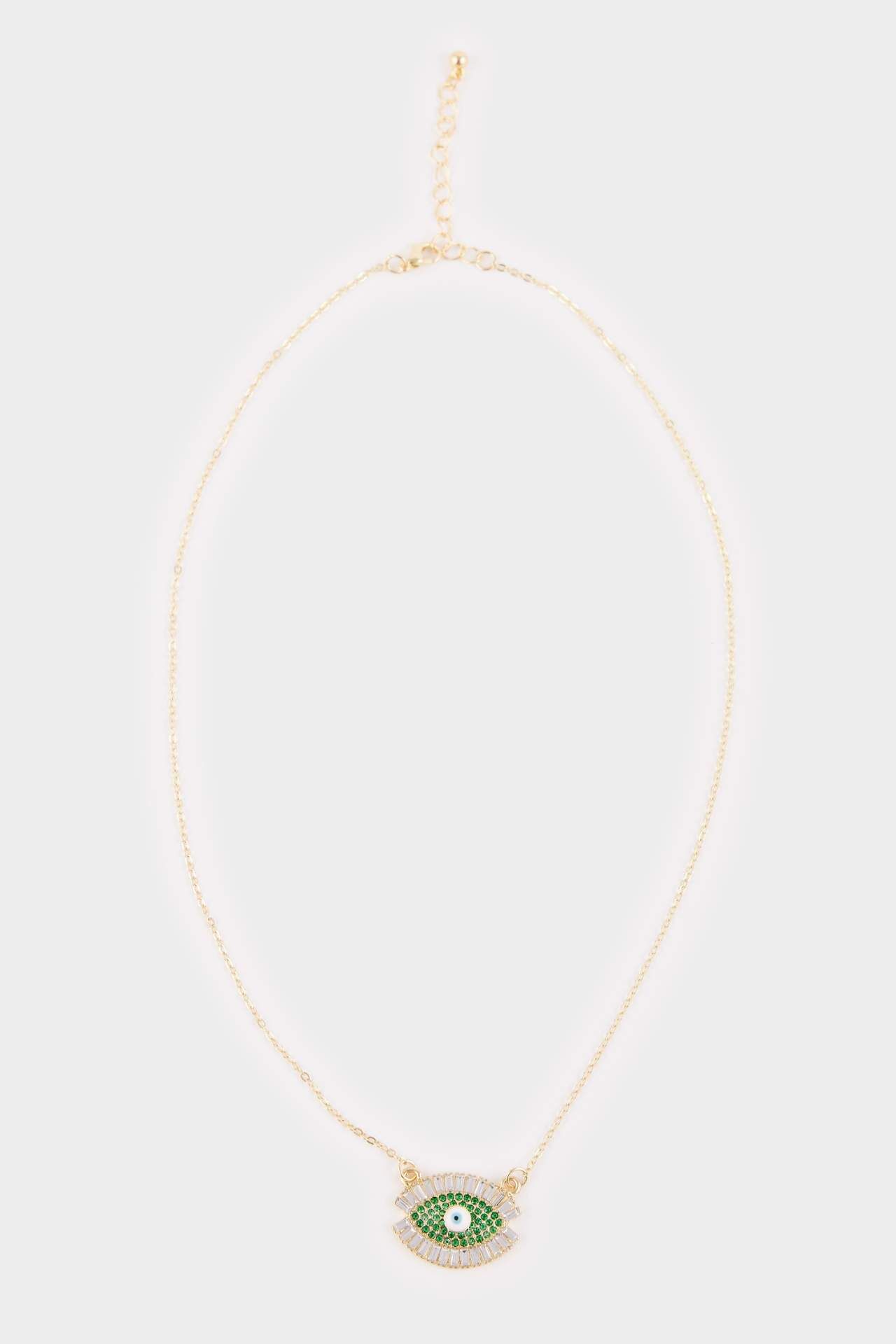 Kadın Çelik Yeşil Göz Detaylı Kolye