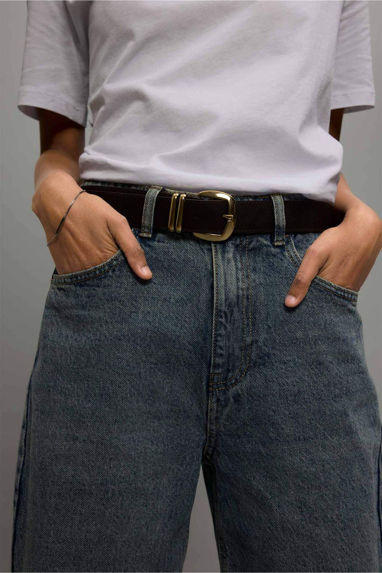 Kadın Dikdörtgen Toka Suni Deri Jean Kemeri