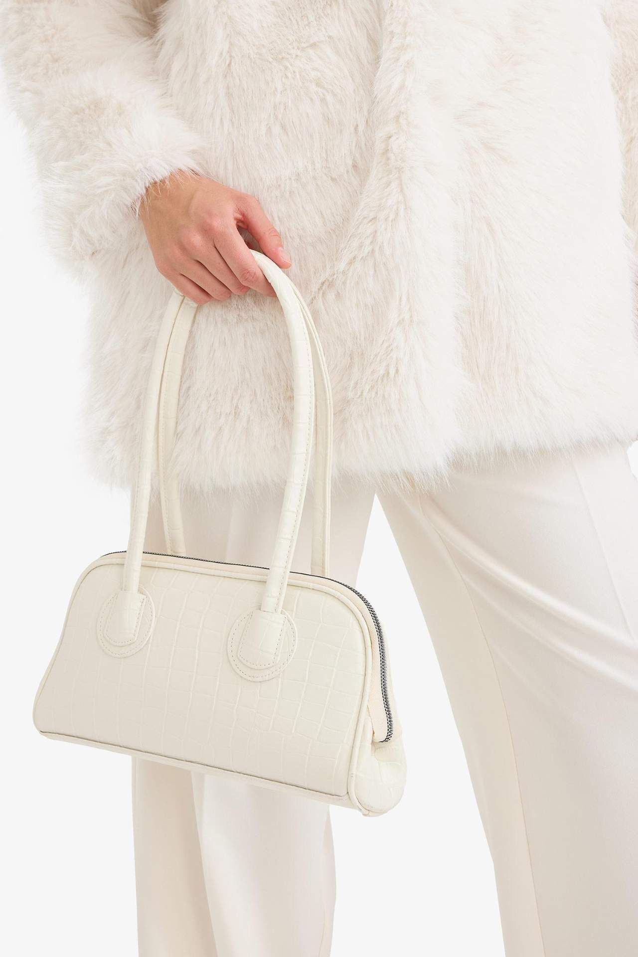 Şık ve fonksiyonel tasarımıyla bu kadın el çantası, hem gündelik kullanımda hem de özel günlerde şıklığınızı tamamlar. Yeterli iç hacmiyle eşyalarınızı düzenli şekilde taşımanızı sağlar. Poliüretan 100%,Poliester 100% Manken Bedeni: Göğüs: 0 Boy: 0 Basen: 0 Bel: 0