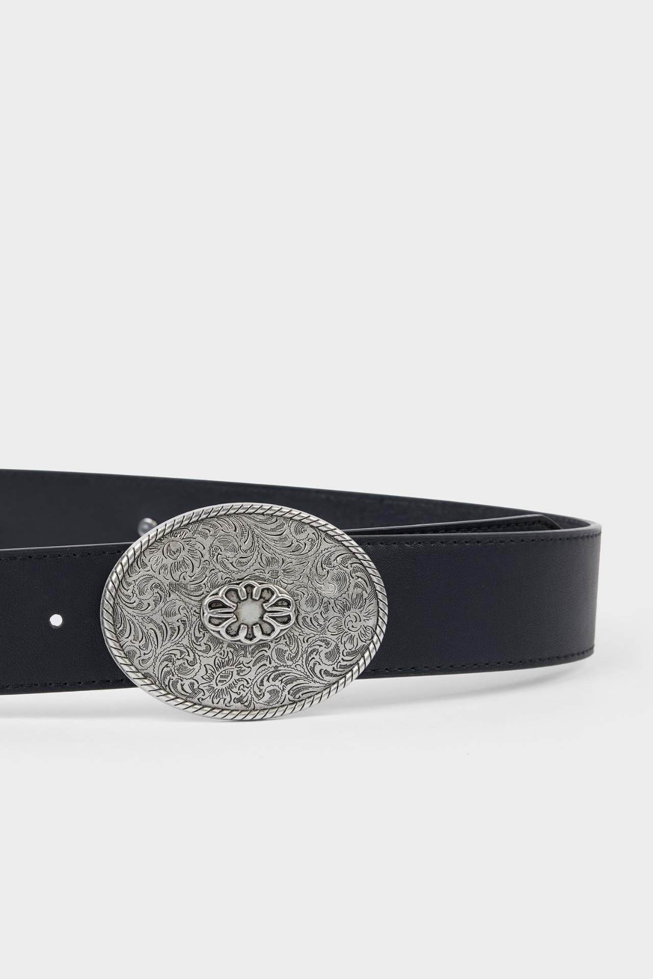 Kadın Hayvan Baskılı Büyük Toka Suni Deri Günlük Kemer