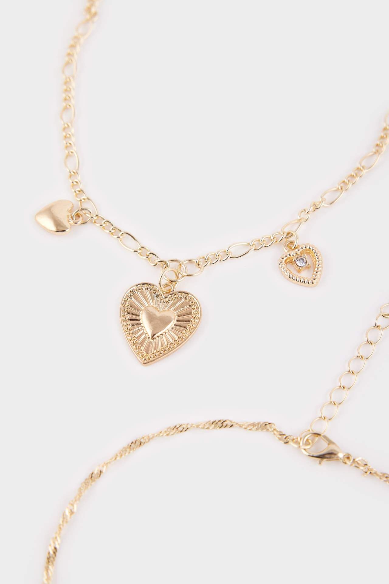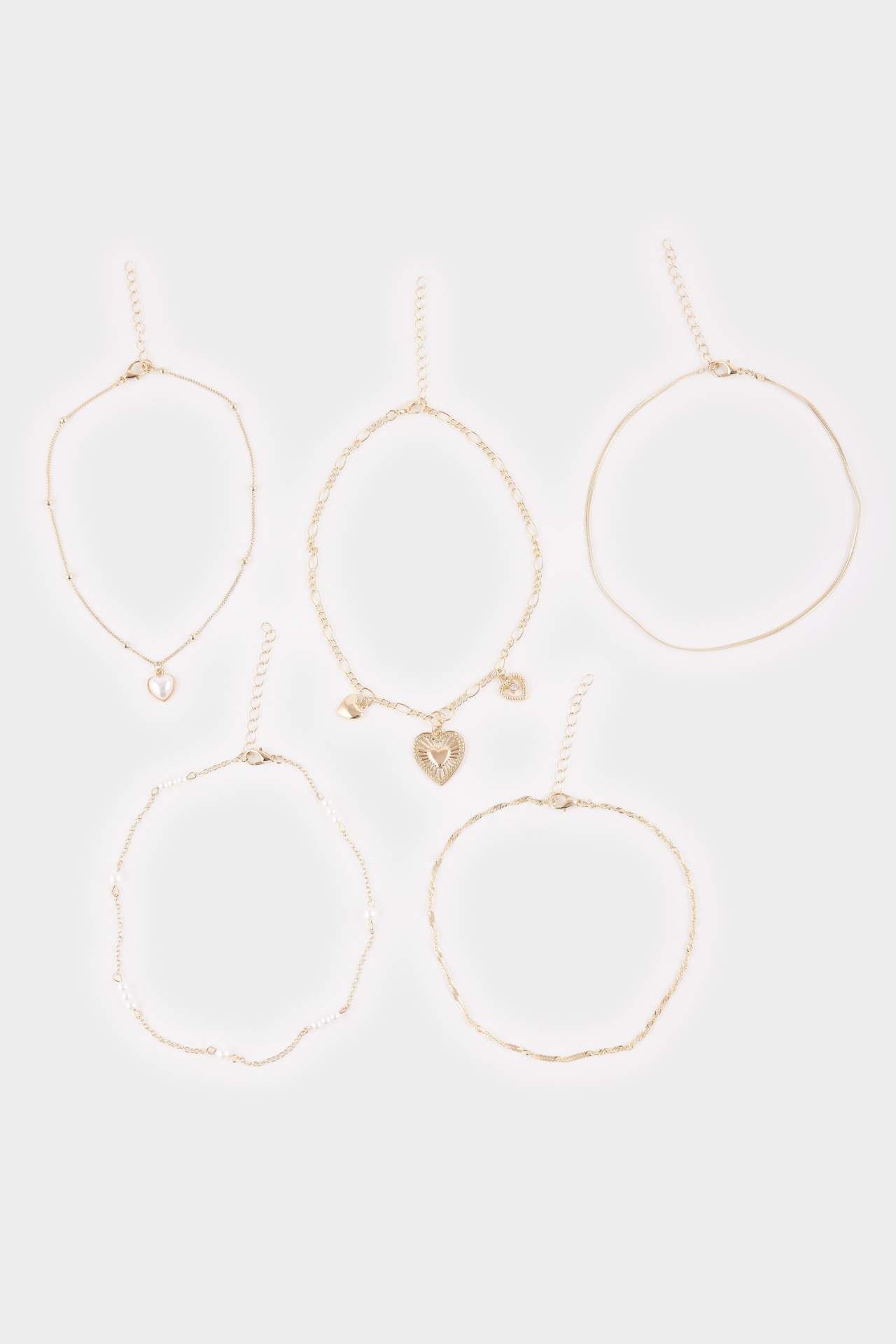 Kadın Kalp Detaylı 5'li Kolye Seti