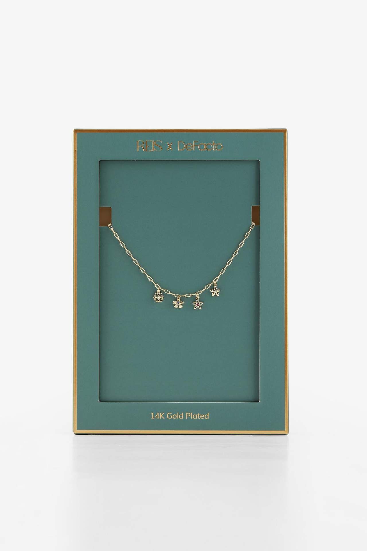Gold detaylardan oluşan birbirinden şık ve özel parçaların yer aldığı Reis x Defacto koleksiyonunda; taşlı ve sade tasarımlarla kolye, küpe, bileklik, şahmeran, charm ve yüzük gibi şıklığınızı tamamlayacak birçok parça sizi bekliyor. Gündüzden geceye, günlük stilinize zarif bir dokunuş katmak ya da özel bir davette parlamak için ideal. Her anınıza ışıltı katmak için tasarlanan Reis x Defacto koleksiyonunu şimdi keşfedin! Cam 15%,Pirinç 85% Manken Bedeni: Göğüs: 83 Boy: 1,79 Basen: 90 Bel: 61