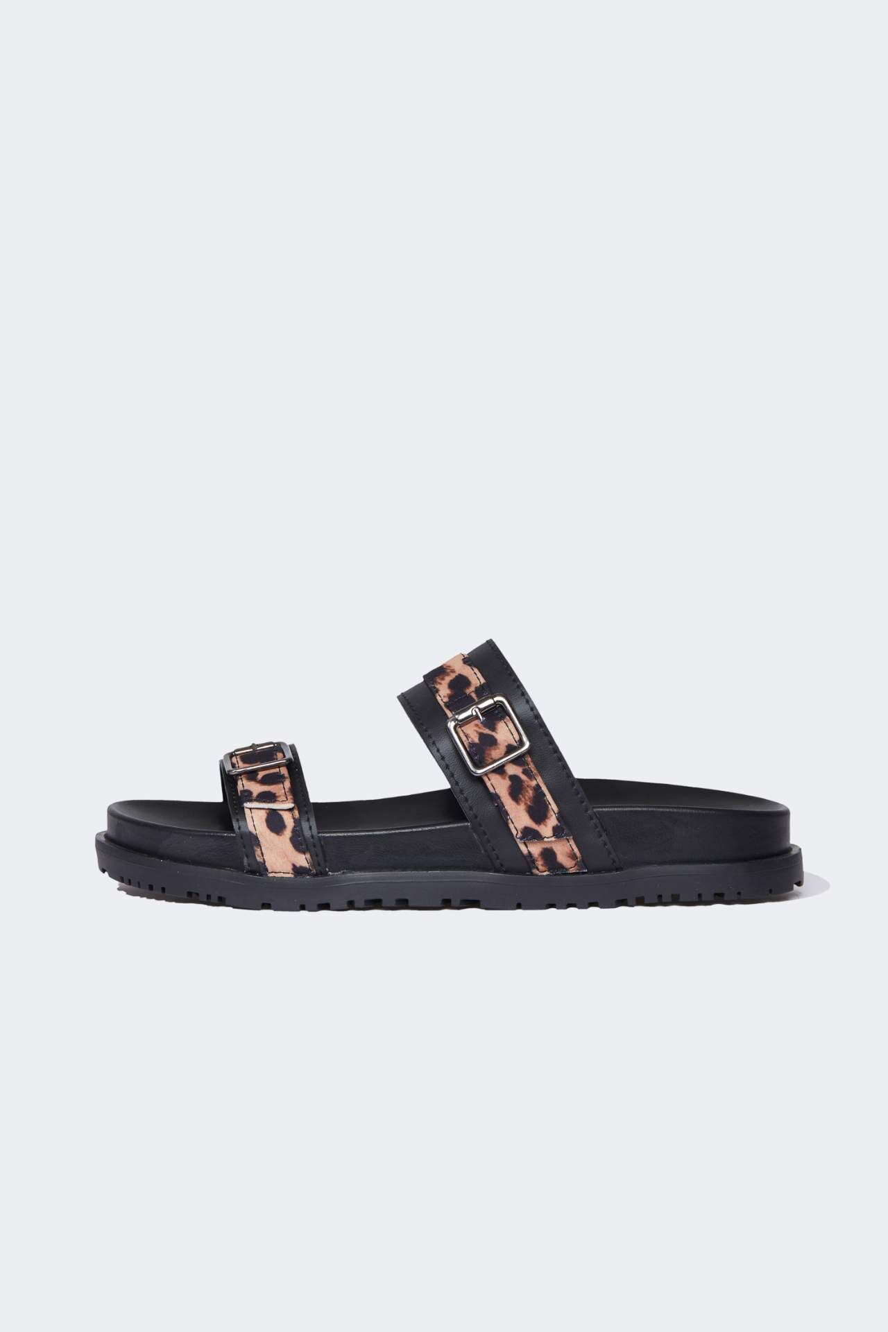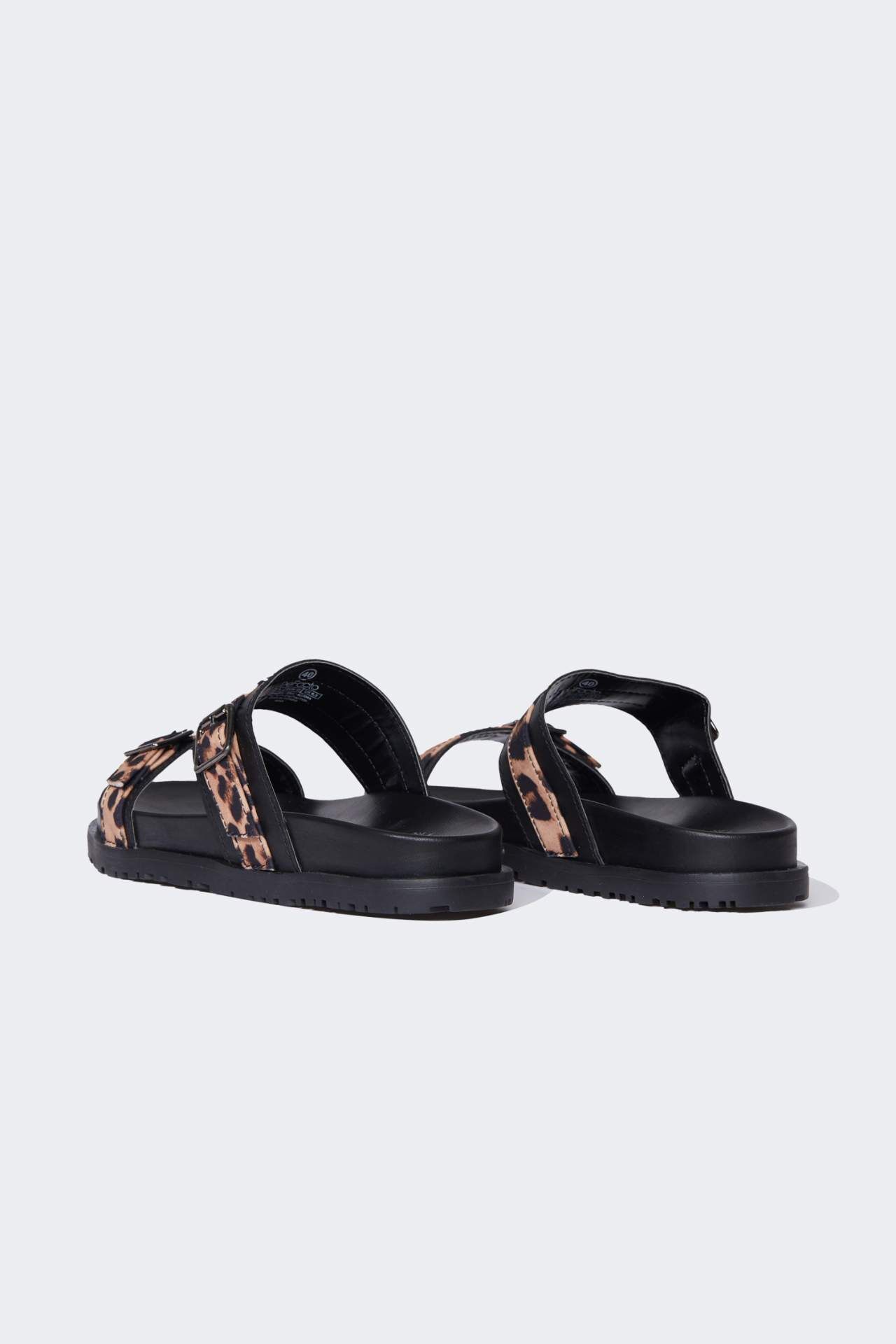 Kadın Leopar Desenli Düz Taban Tek Bantlı Suni Deri Terlik