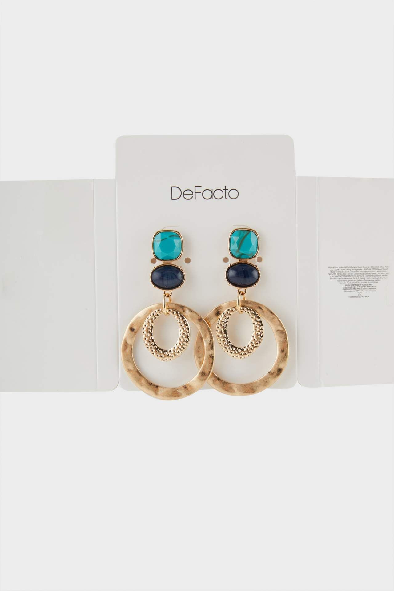 DeFacto Kadın Mavi Taşlı Gold Küpe