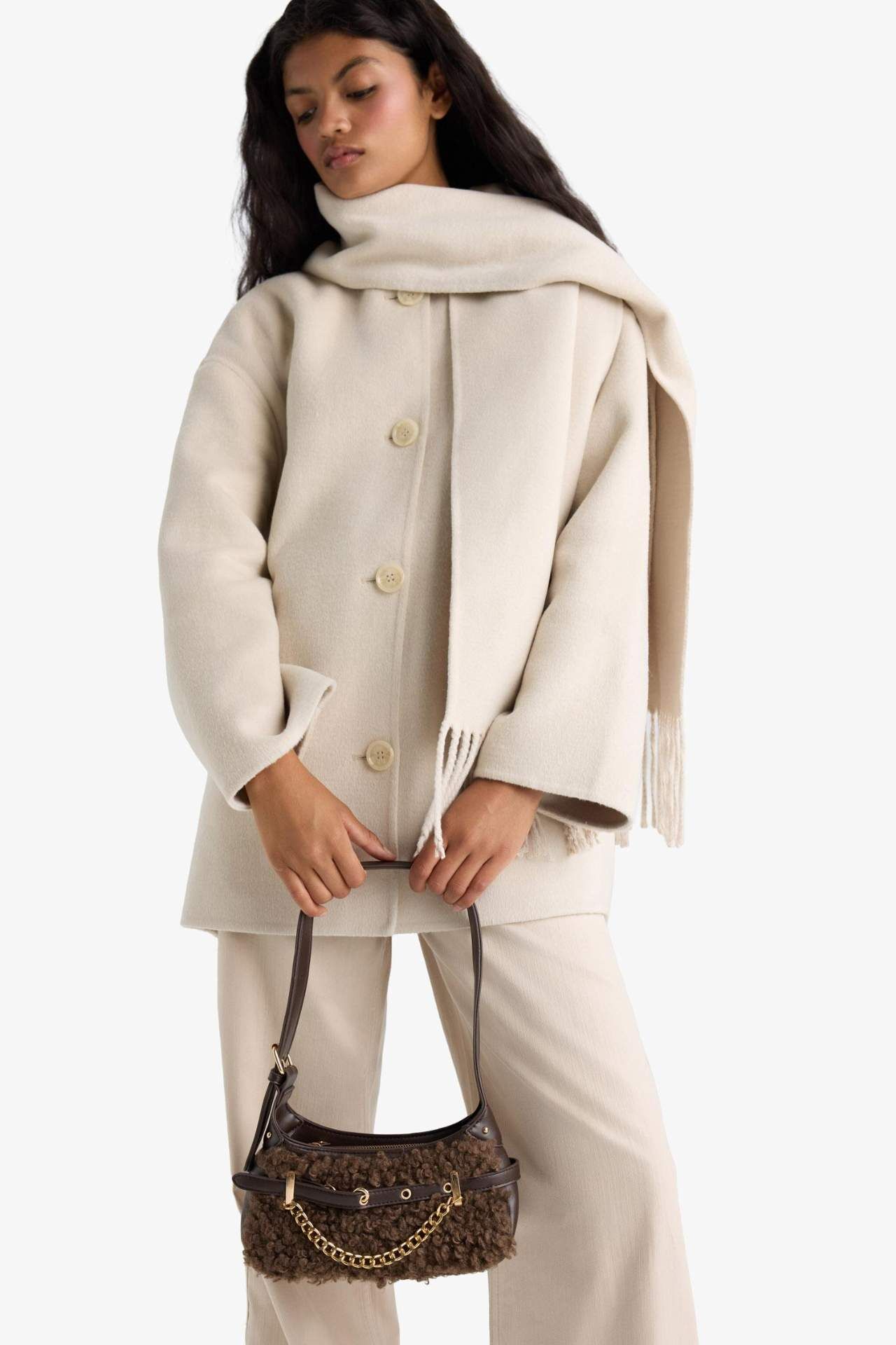 Pelüş detaylarıyla yumuşak bir dokunuş kazanan kadın suni deri çapraz çanta, hem şık hem konforlu bir kullanım sunar. Günlük stilinizi tamamlayacak bu parça, fonksiyonel iç hacmiyle de öne çıkar. Poliüretan 100%,Poliester 100%,Poliester 100%