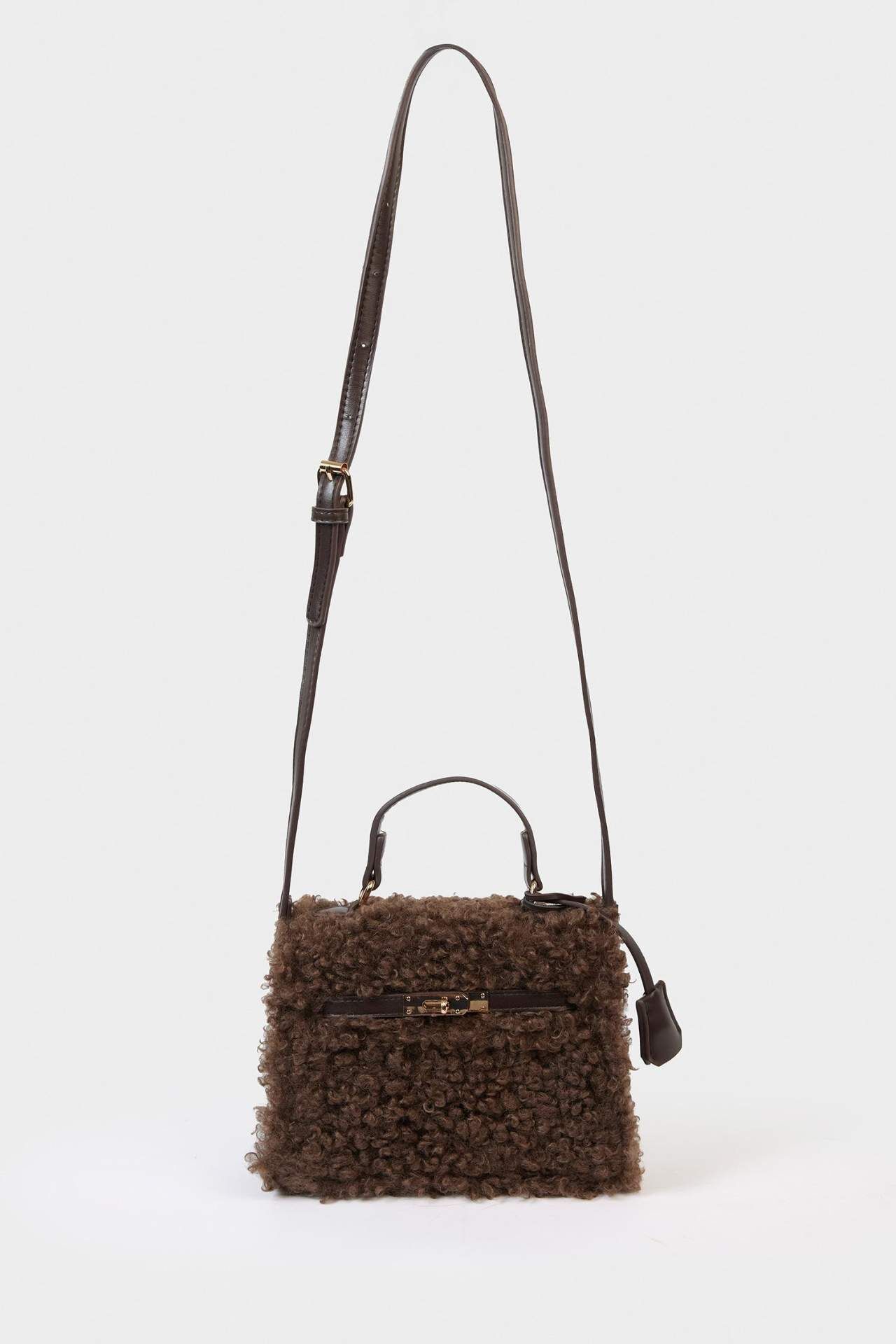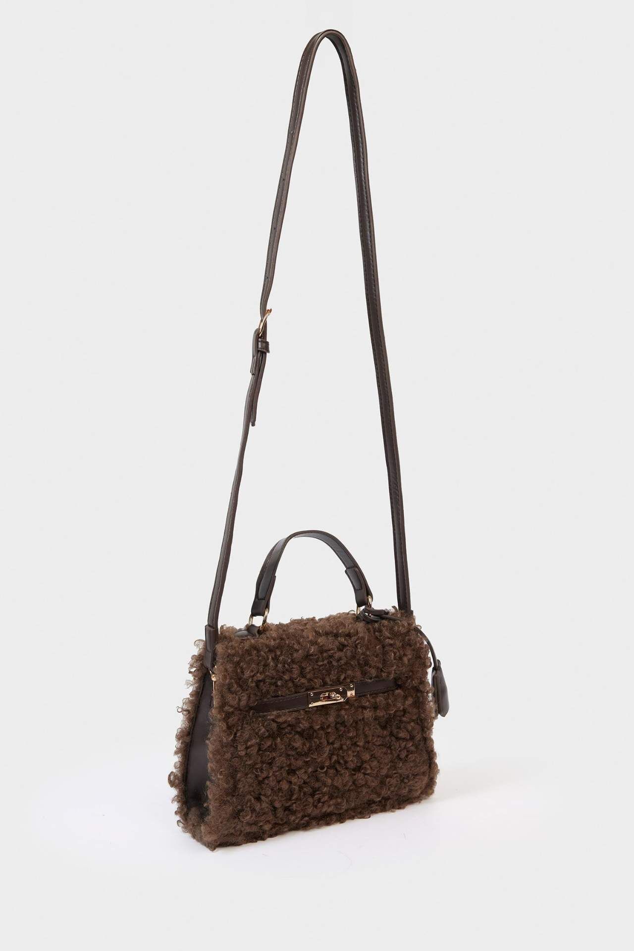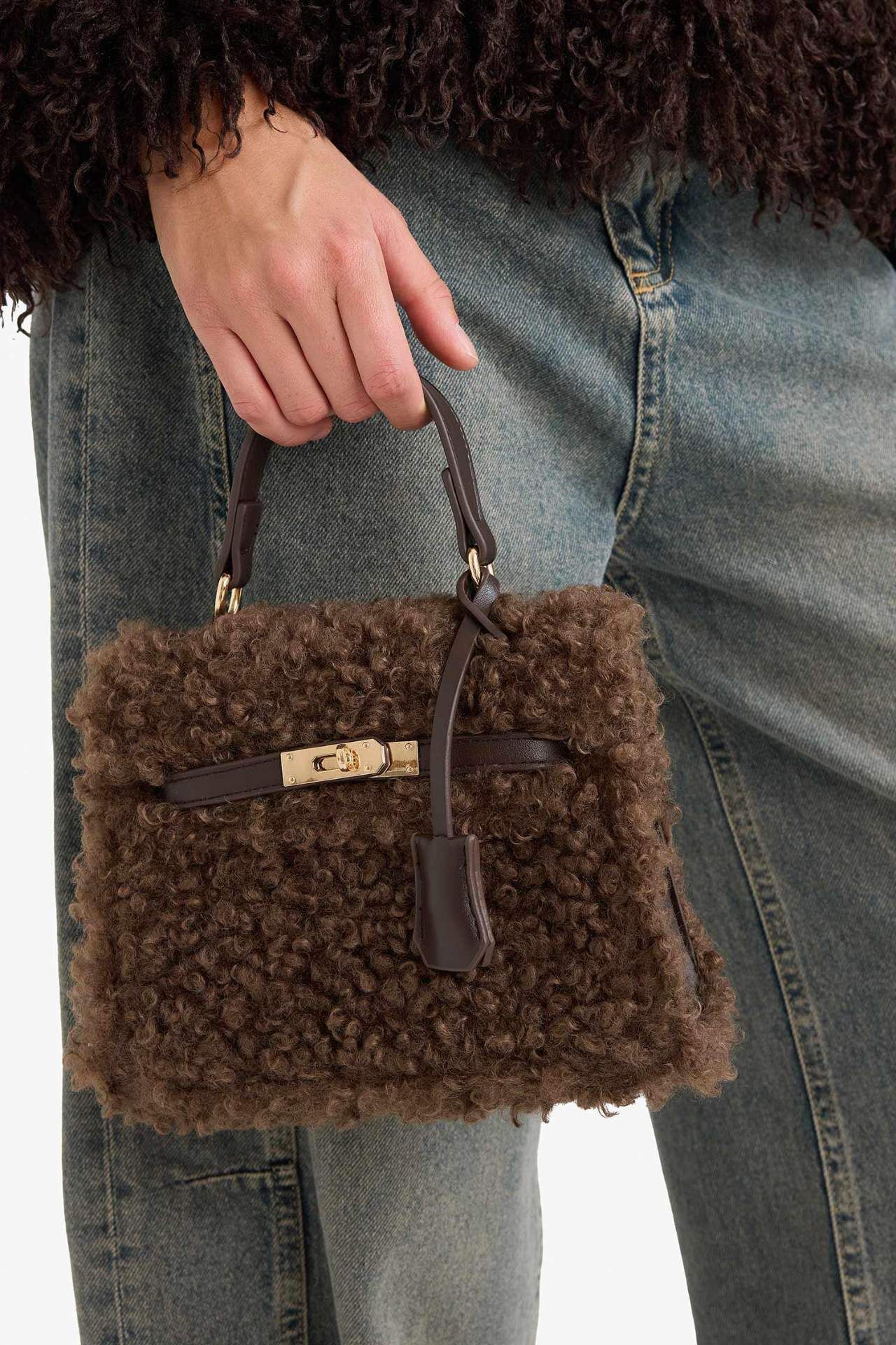 Yumuşacık pelüş dokusuyla kış stiline sıcak bir dokunuş katan bu el çantası, hem şık hem de konforlu bir kullanım sunar. Günlük kombinlerinize zarif bir dokunuş ekleyerek tarzınızı tamamlar. Poliüretan 100%,Poliester 100%,Poliester 100% Manken Bedeni: Göğüs: 0 Boy: 0 Basen: 0 Bel: 0