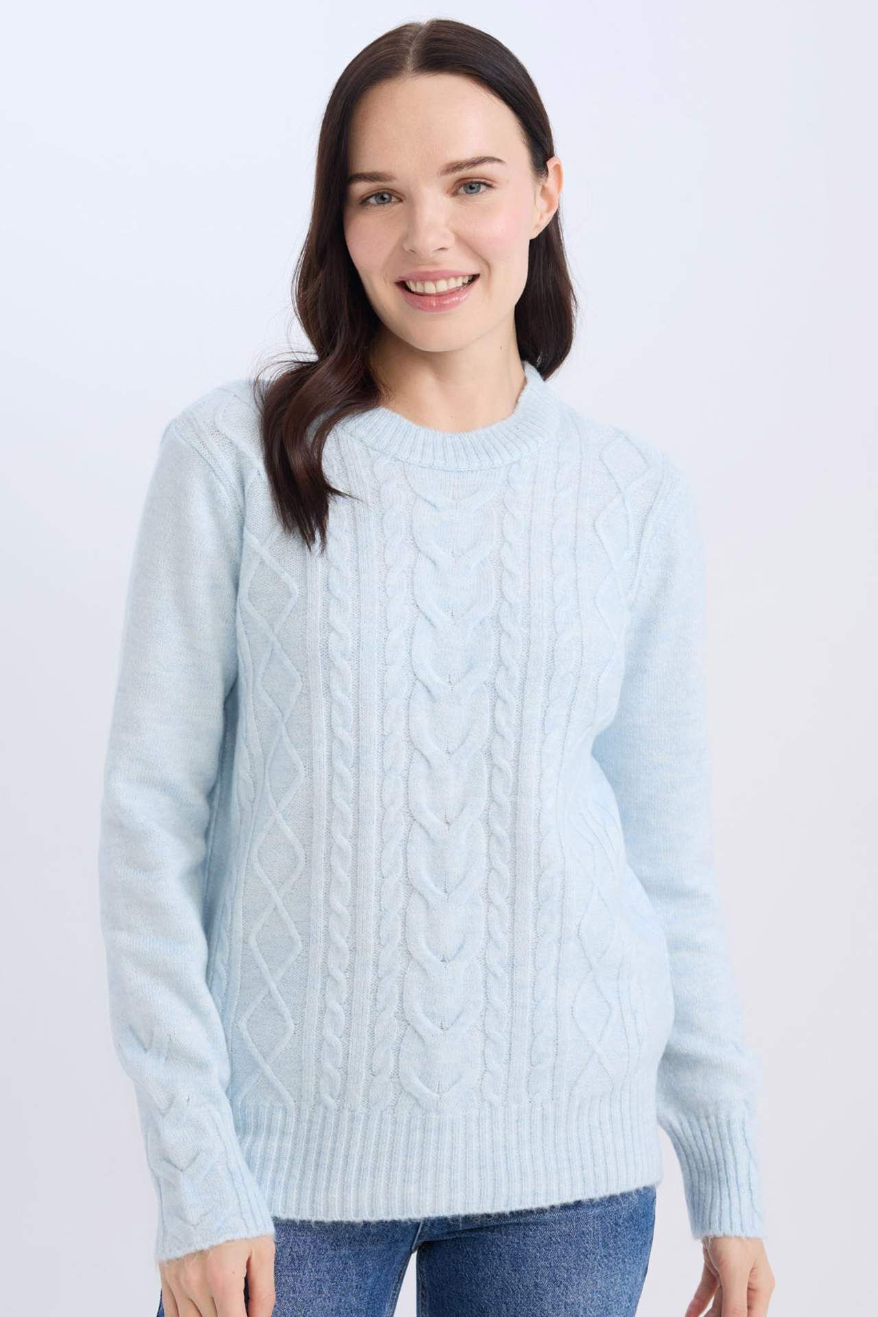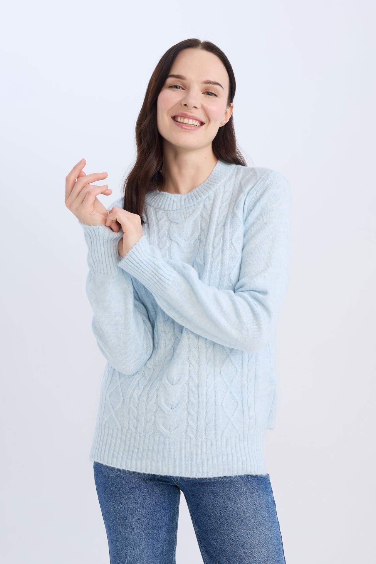 DeFacto Kadın Regular Fit Bisiklet Yaka Saç Örgülü Triko Kazak